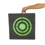 На гранях щита мишени на гранях щита расположено три типа мишеней зеленого цвета: стандартная мишень из трех кругов, четыре маленьких круга, пять зеленых кругов с небольшими черными кругами внутри. Для удобства переноски у щита есть удобная ручка.