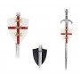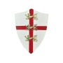 Деревянный геральдический мини-щит Ричарда "Львиное сердце" (Richard Lion Heart Shield). Средневековый щит Ричарда Львиное Сердце миниатюрный, белый фон, в центре Красный Крест, украшенный 3 львами на вертикальной линии. Оснащен кронштейном на обратной стороне для крепления на стену или на клинок меча.