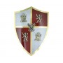 Щит рыцарский металлический "Эль Сида Кампеадора" (El Cid Campeador) с мотивами замков, необузданным львом и головами орла. Назван в честь легендарного испанского генерала-воина переводится буквально как "Господь, мастер военных искусств". Эффектный щит отлично подойдёт как для домашнего декора в историческом рыцарском стиле, так и для реконструкторов.