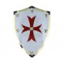 Металлический щит Крестоносцев рыцарский (Crusader Shield). На щите эмблема Крестоносцев «крест-патте», увенчанный мотивом льва и окруженным латунью Флер де Лис. Он изготовлен из стали и латуни и имеет висячую цепь на обороте. На оборотной стороне - устройство для вертикального монтажа одного меча или 2 скрещенных мечей.