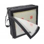 Стрелковая зона имеет дополнительный съемный экран из сетки, которая удерживает бумажную мишень на щите. В комплекте с щитом идут 10 сменных мишеней. Для удобства использования и переноски щит оснащен широким регулируемым ремнем.