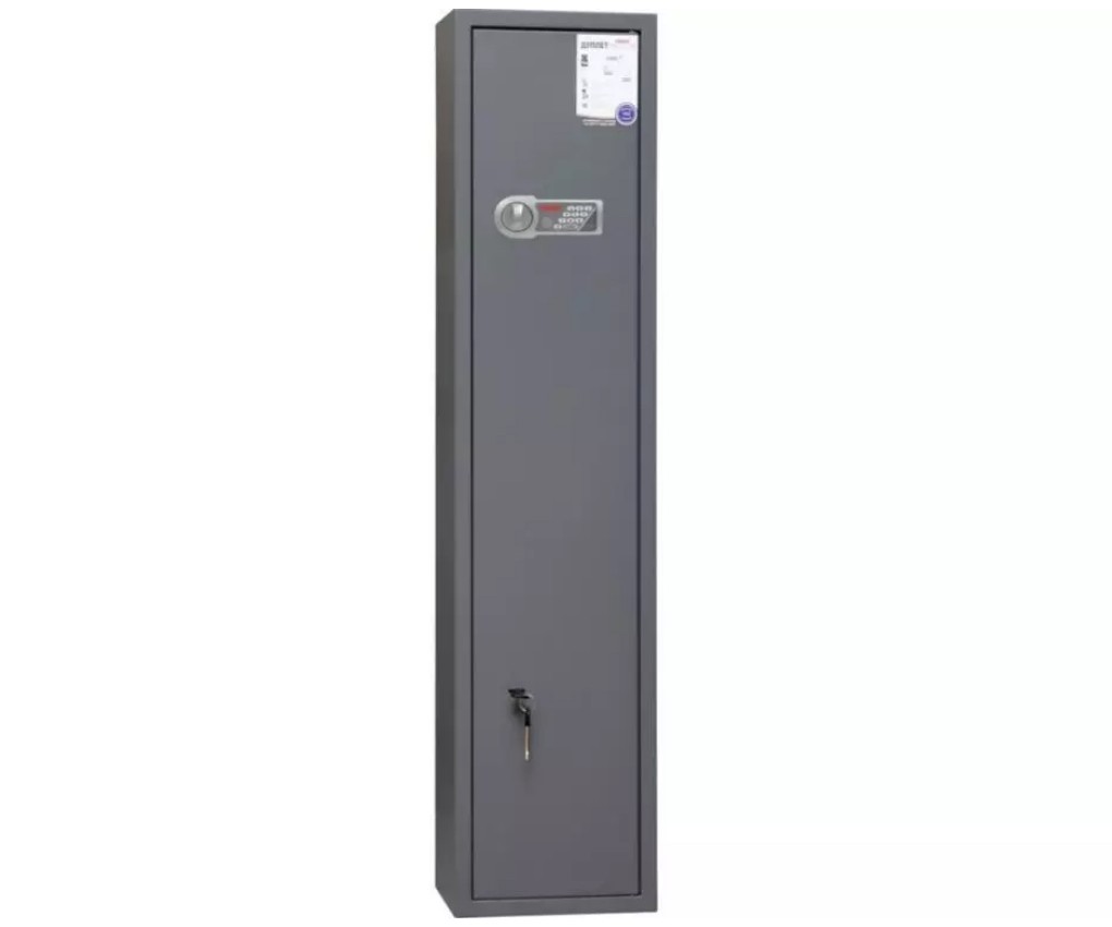 Оружейный шкаф соответствует всем требованиям МВД по хранинению оружия. Данный шкаф предназначен для хранения 3 ружей высотой не больше 1200 мм. Шкаф оснащен анкерным креплением к стене и полу. Размер - 1300х300х200 мм, вес - 16,5 кг. Для удобства, в шкафу есть трейзер со съемной полкой, для хранения патронов. На двери установлен специальный карман для хранения документов, что очень удобно. Замок ключевой и электронный.