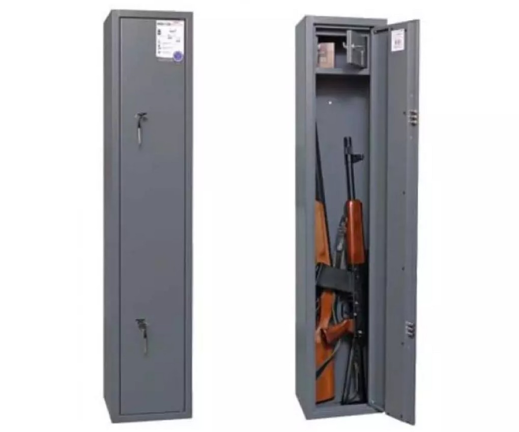 Для хранения ружья обязательно надо использовать специальный оружейный шкаф. Данный шкаф расчитан для хранения двух стволов. Размер шкафа - 1300х265х225 мм, а вес 14,4 кг. Толщина корпуса и двери - 1,5 мм. Оружейный шкаф закрывается на 2 сувальдных замка и крепится с помощью анкерного крепления к стене и полу.