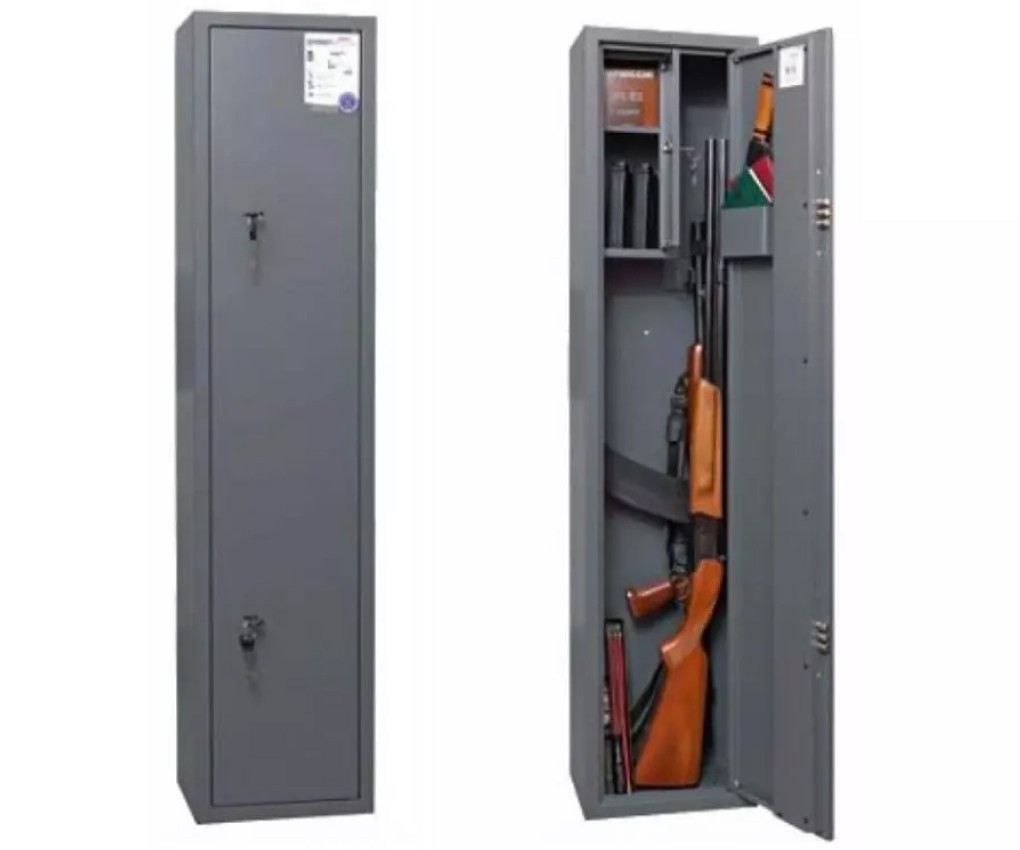 Для хранения огнестрельного оружия, по российскому законодательству, должно храниться в специальных оружейных шкафах. По российскому законодательству огнестрельное оружие должно храниться в специальных оружейных шкафах. Оружейный шкаф рассчитан на 3 ружья - для каждого имеется ложемент для крепления. В нем есть - трейзер (для хранения патронов), который закрывается на отдельный ключ, и карман на двери шкафа (для хранения документов). Оружейный шкаф закрывается на 2 сувальдных замка.