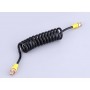Шланг ВД 63МПа спиральный "мамба" (развёрнутая длина ~150 см) длиной в свёрнутом виде ~30 см, диаметр спирали ~3 см, на концах М10х1 НР. Используется в качестве очень гибкого в любых направлениях и в некоторых пределах растягивающегося шланга. На всю длину разворачивать не рекомендуется. Можно отдельно приобрести квики на концы