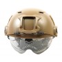 Каска-шлем для страйкбола, сделанная из ударопрочного ABS-пластика. Качественно оберегает голову от шаров и повреждений. Внутри шлема есть подушки для смягчения, которые можно поднастроить.