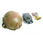 На шлеме установлены: крепление для прибора ночного видения, направляющие для установки дополнительного оборудования (нашлемного фонаря, экшн-камеры и т.д.) и панели с липучкой Velcro.