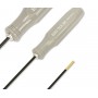 Шомпол максимально жесткий, он не будет гнуться, чистка будет легче и эффективнее. Также имеется латунный наконечник, который устраняет необходимость в дополнительных адаптерах при смене ершиков. Оснащен цветной, эргономичной, бесступенчатой шарикоподшипниковой рукояткой, с маркировкой калибра. Подшипник в рукояти помогает проворачивать ершик по нарезке во время хода по стволу, что делает процесс чистки очень удобным.