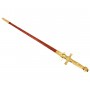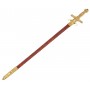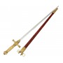 Особое внимание уделено оформлению эфеса: позолоченная рукоять, гарда и навершие украшены рельефными узорами и императорской символикой, характерной для оружия высших военных чинов времен Наполеона. Дополняют образ декоративные ножны из ударопрочного красного полимера, украшенные металлическими вставками с художественным литьем.