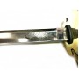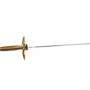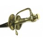 Деревянная рукоять обмотана витой проволокой, головка обычно восьмигранная, дужка как продолжение крестовины, а у многих шпаг внутренняя половина чашки откидывается к рукояти.