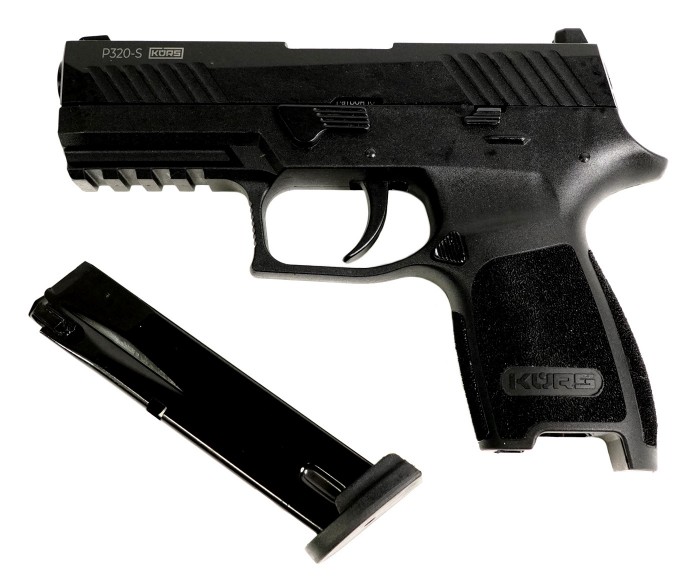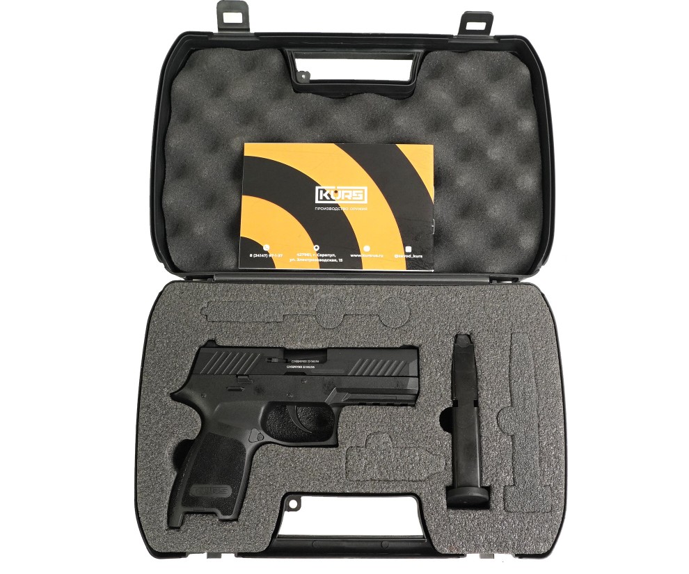 Сигнальный пистолет P320-S KURS имеет внешнее сходство с пистолетом SIG Sauer P320 производства немецкой компании SIG Sauer GmbH. Пистолет является сигнальным согласно сертификату. Калибр 5,5 мм (до 6 мм), т.е. для его приобретения не требуется лицензия, и он не подлежит регистрации в органах ЛРР Росгвардии. Используемый в пистолете боеприпас - патрон светозвукового действия 10ТК, сертифицированный «Техкрим» летом 2021 года в том числе и для применения в сигнальном оружии калибра 5,5 мм.