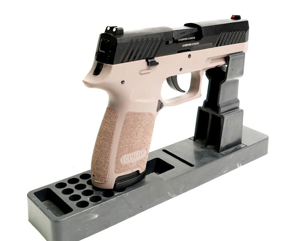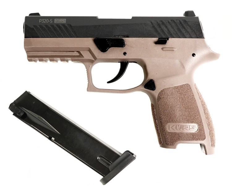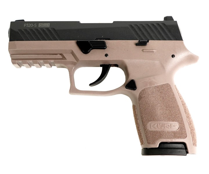 Сигнальный пистолет P320-S KURS имеет внешнее сходство с пистолетом SIG Sauer P320 производства немецкой компании SIG Sauer GmbH. Пистолет является сигнальным согласно сертификату. Калибр 5,5 мм (до 6 мм), т.е. для его приобретения не требуется лицензия, и он не подлежит регистрации в органах ЛРР Росгвардии. Используемый в пистолете боеприпас - патрон светозвукового действия 10ТК, сертифицированный «Техкрим» летом 2021 года в том числе и для применения в сигнальном оружии калибра 5,5 мм.