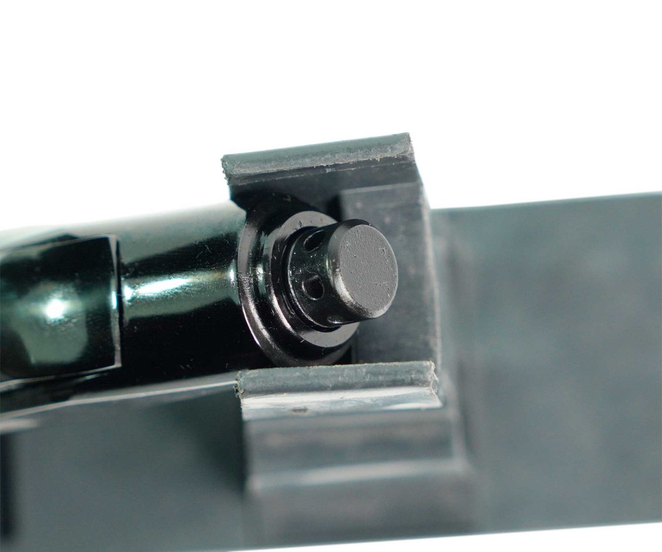 При включении предохранителя (рычажок находится в верхнем положении, параллельно стволу) происходит разобщение ударника (который сдвигается внутрь затвора) и курка. При этом взвод курка и его спуск нажатием на спусковой крючок возможны. При включенном предохранителе также не происходит блокировки затвора.