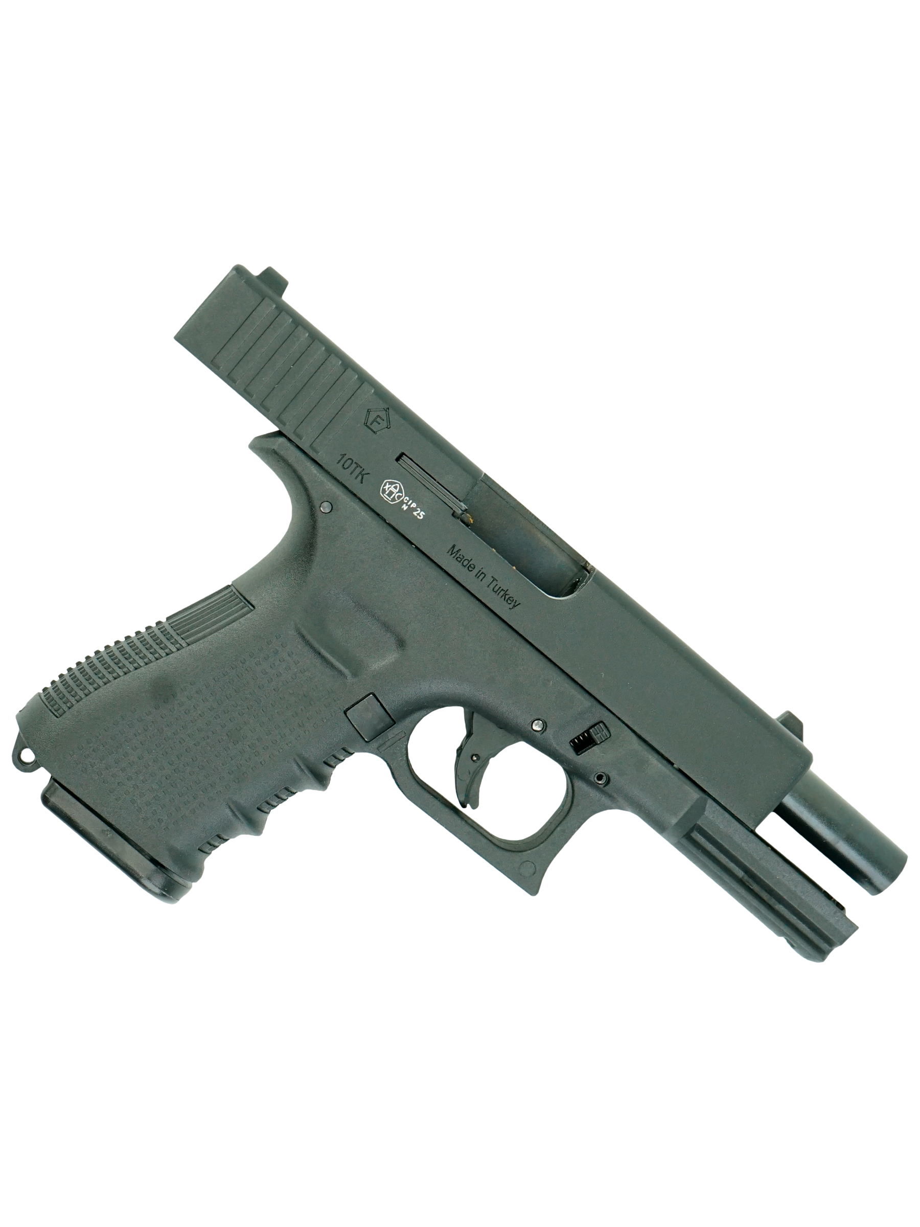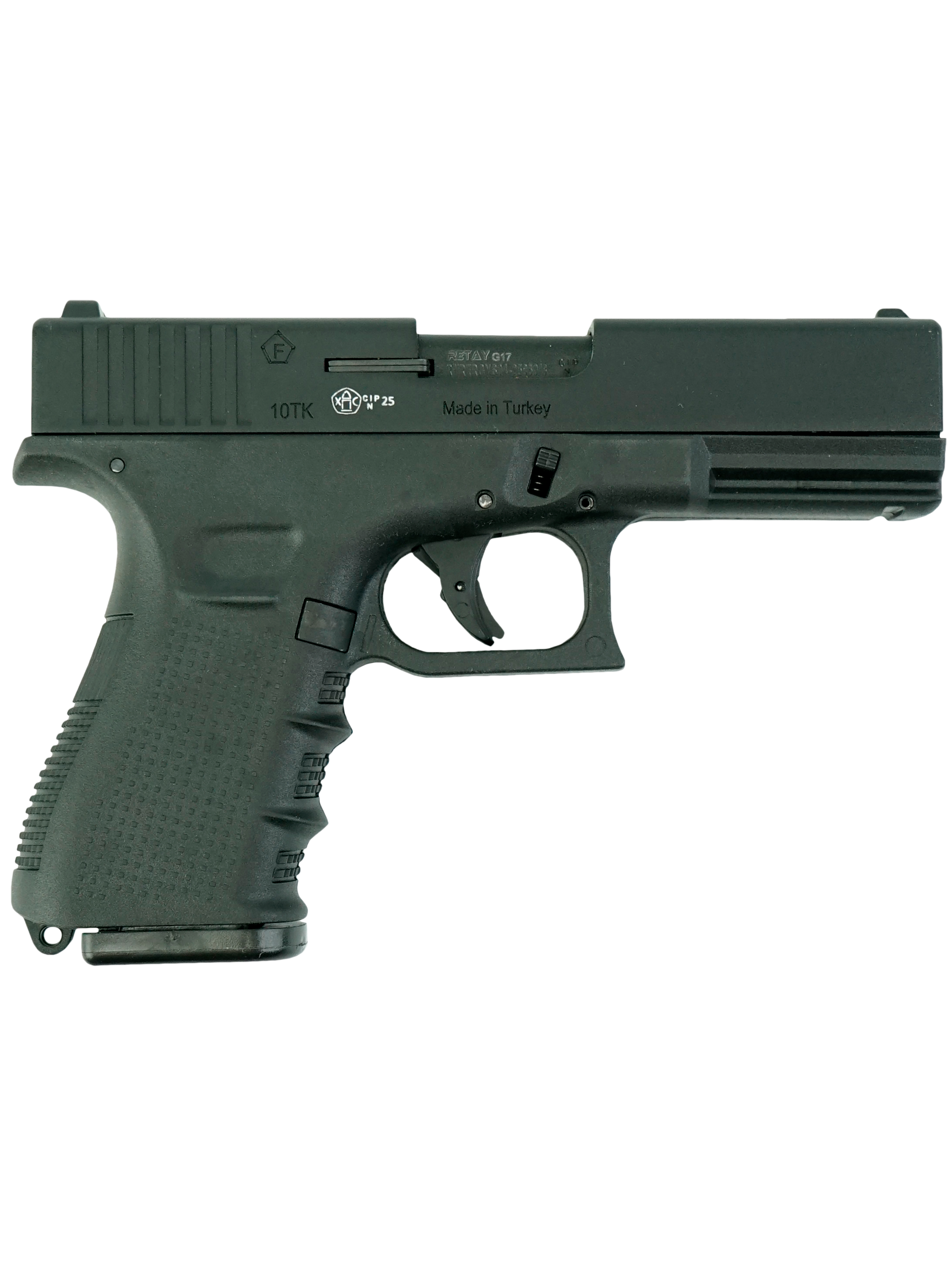 Сигнальный пистолет Retay G17 — это высококачественное устройство, вдохновлённое знаменитым австрийским боевым прототипом Glock 17. Производитель из Турции создал надёжный и эргономичный пистолет, который идеально подходит для подачи светозвуковых сигналов. Выполненный в классическом чёрном цвете, пистолет привлекает внимание своей прочной конструкцией: рамка, затвор и ствол изготовлены из сплава Zamak, а детали ударно-спускового механизма выполнены из стали, что обеспечивает долговечность и надёжность при эксплуатации. Пластиковые накладки на рукоять придают устройству удобство и устойчивый хват.