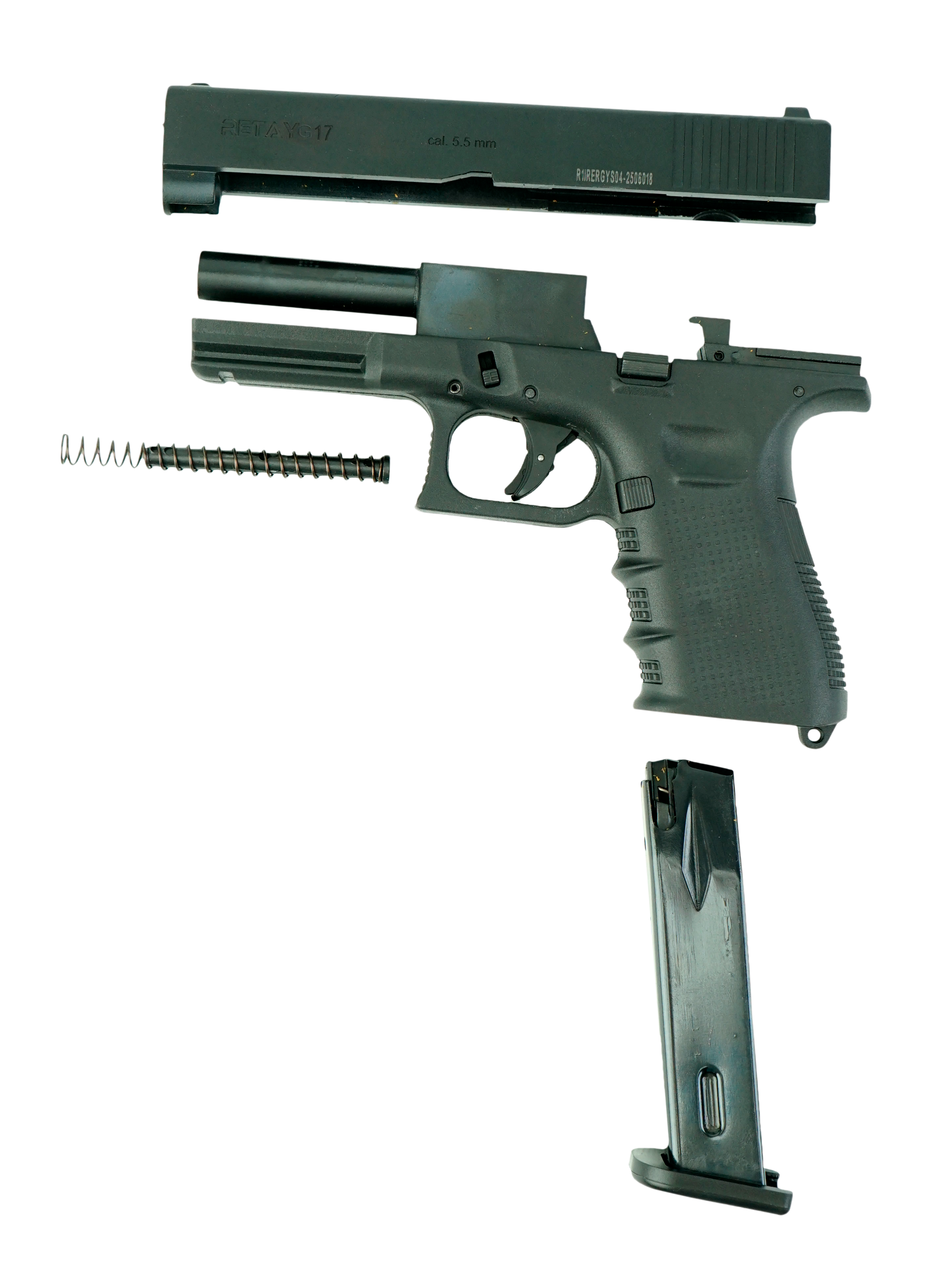 | Материал: | рамка, затвор и ствол - сплав Zamak; детали УСМ - сталь; накладки на рукоять - пластик |
