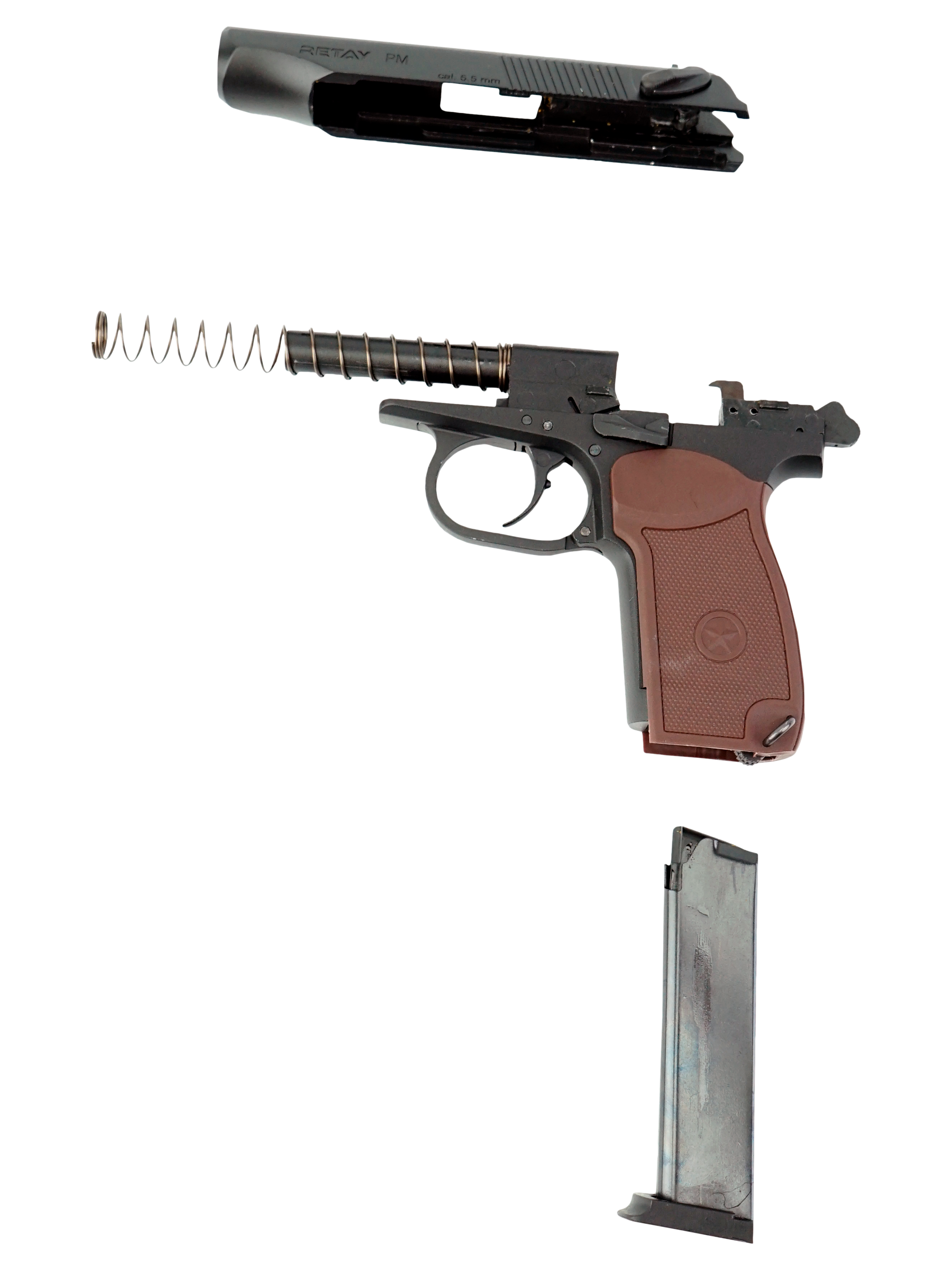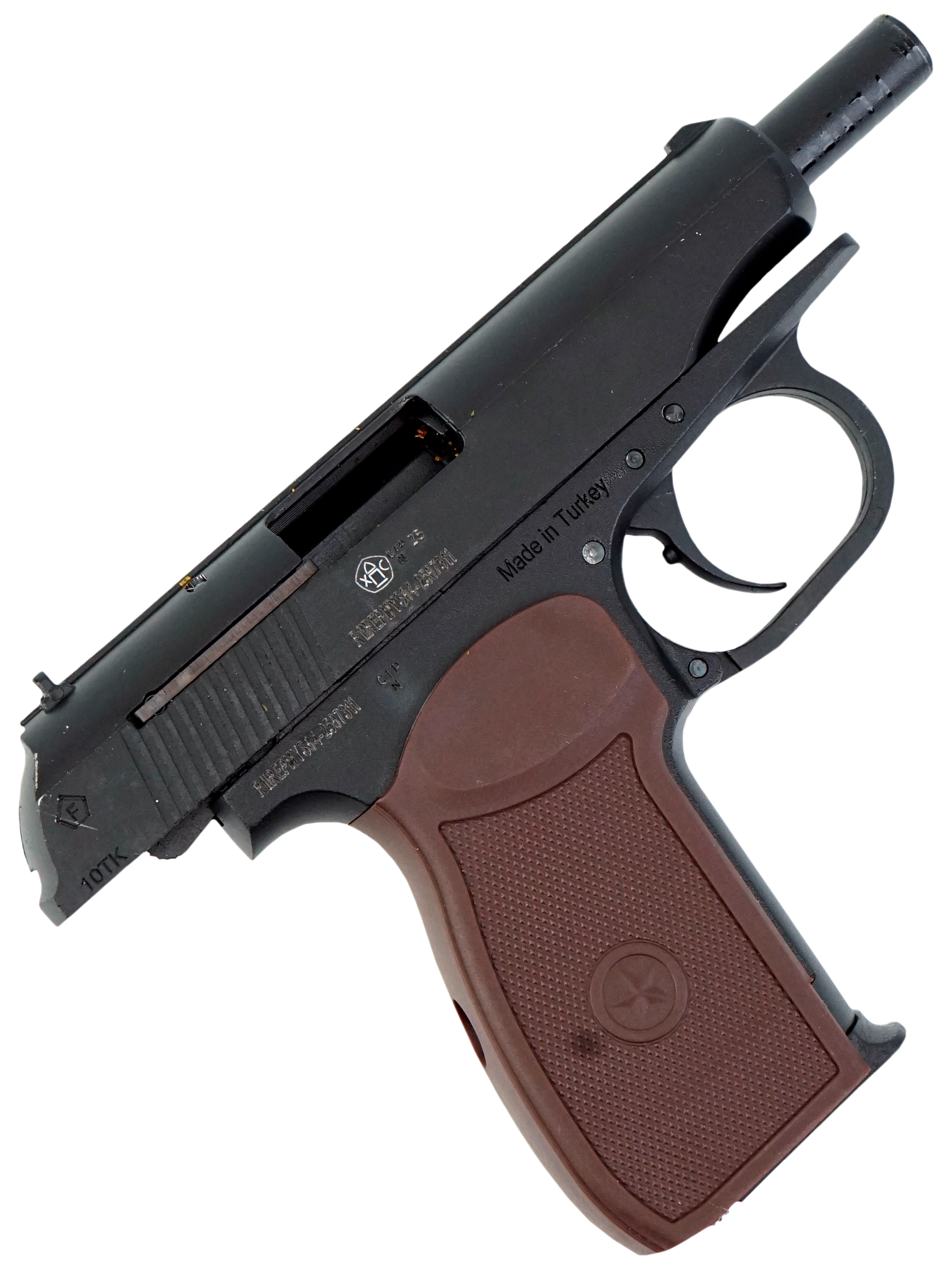 Материал: | рамка, затвор и ствол - сплав Zamak; детали УСМ - сталь; накладки на рукоять - пластик |