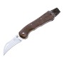 Spora - отличный грибной нож с изогнутым небольшим клинком, который извлекается с помощью шпенька. Рукоять ножа выполнена из ореха, имеет удобную форму, а также щёточку, для очистки грибов. Щёточка складывается, благодаря чему не мешает работе.