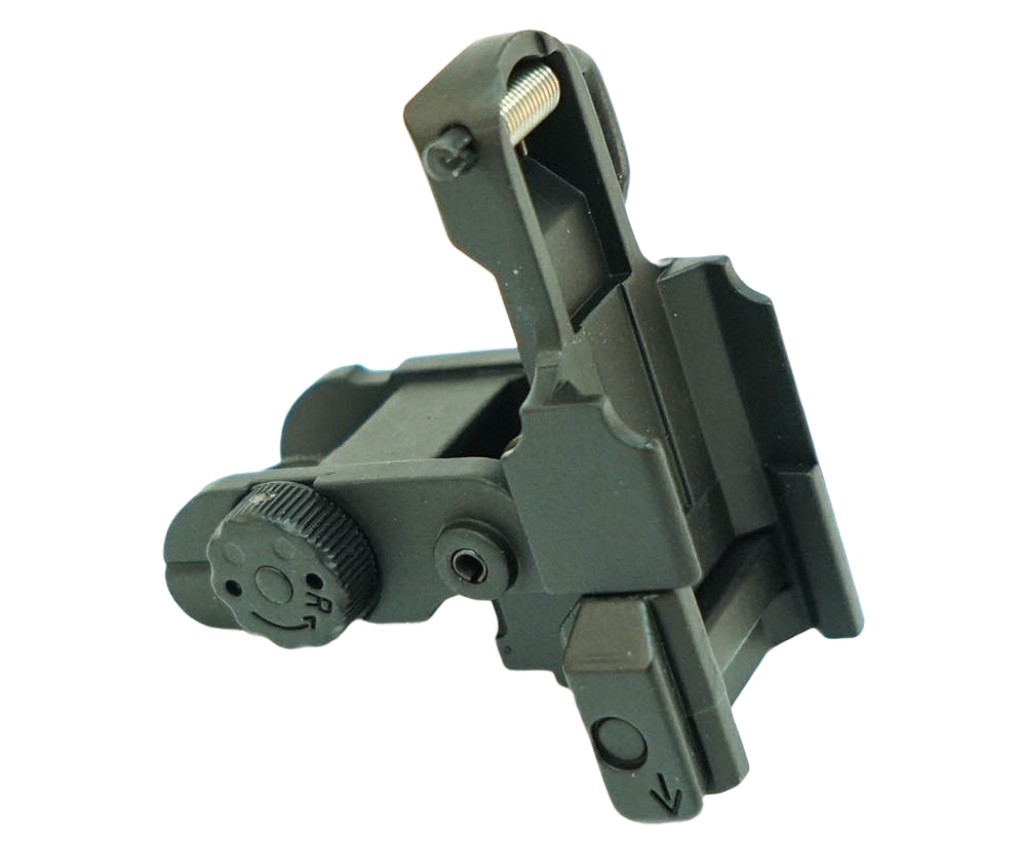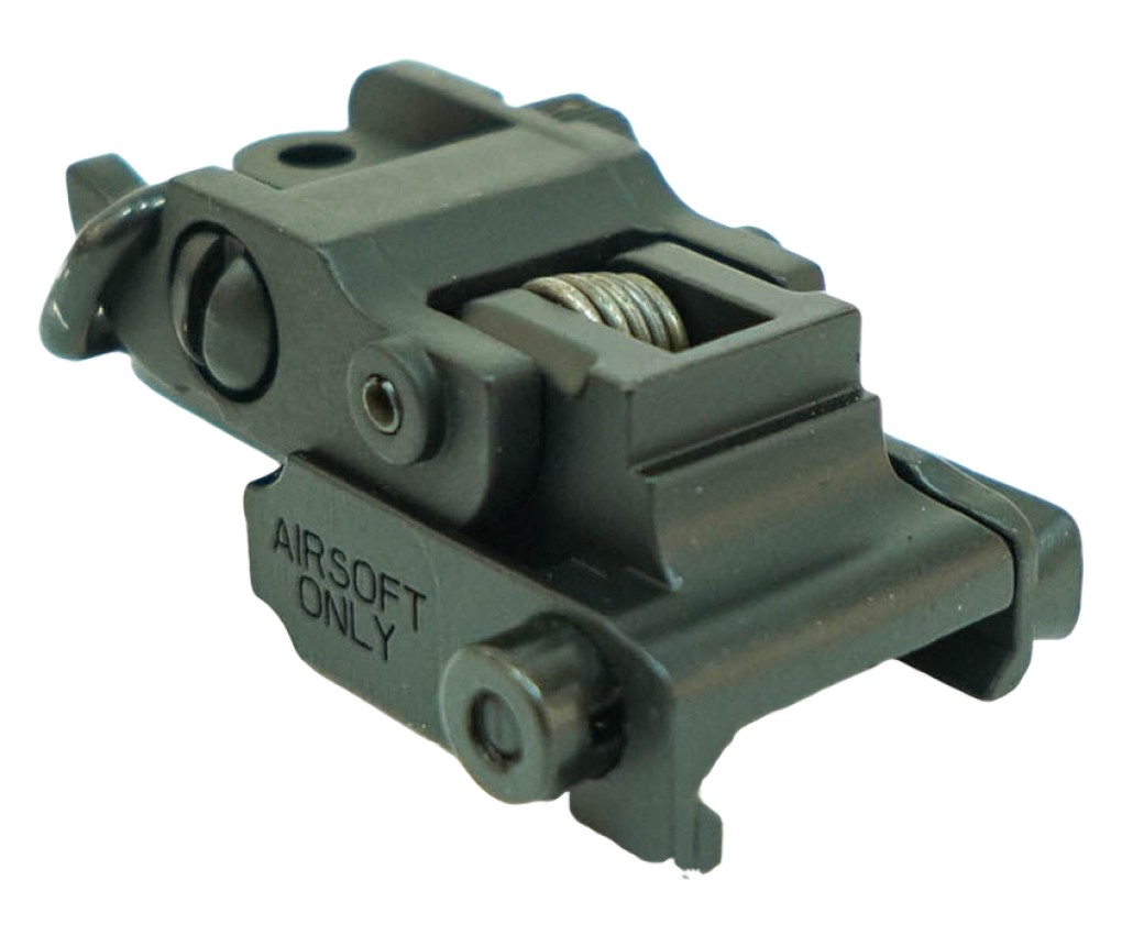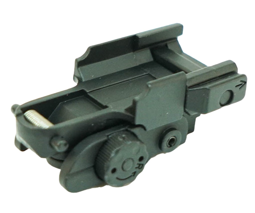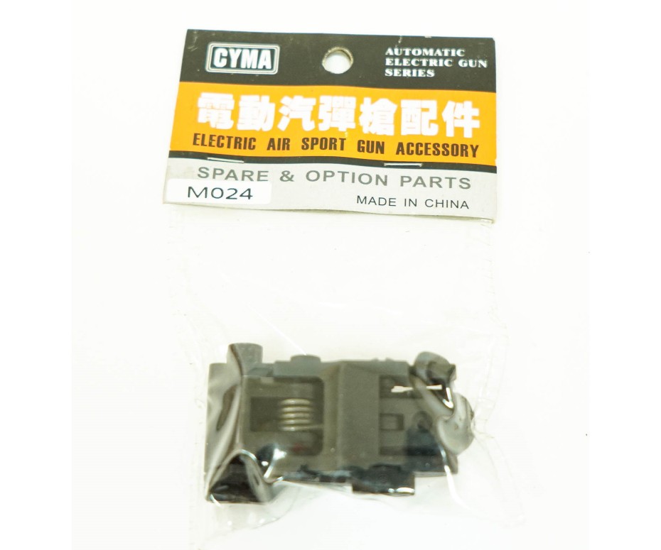 Откидной (складной) механический целик M024 для автоматов М-серии от компании Cyma (Китай). Крепится на RIS-планку (20 мм). Имеет регулировку по осям.