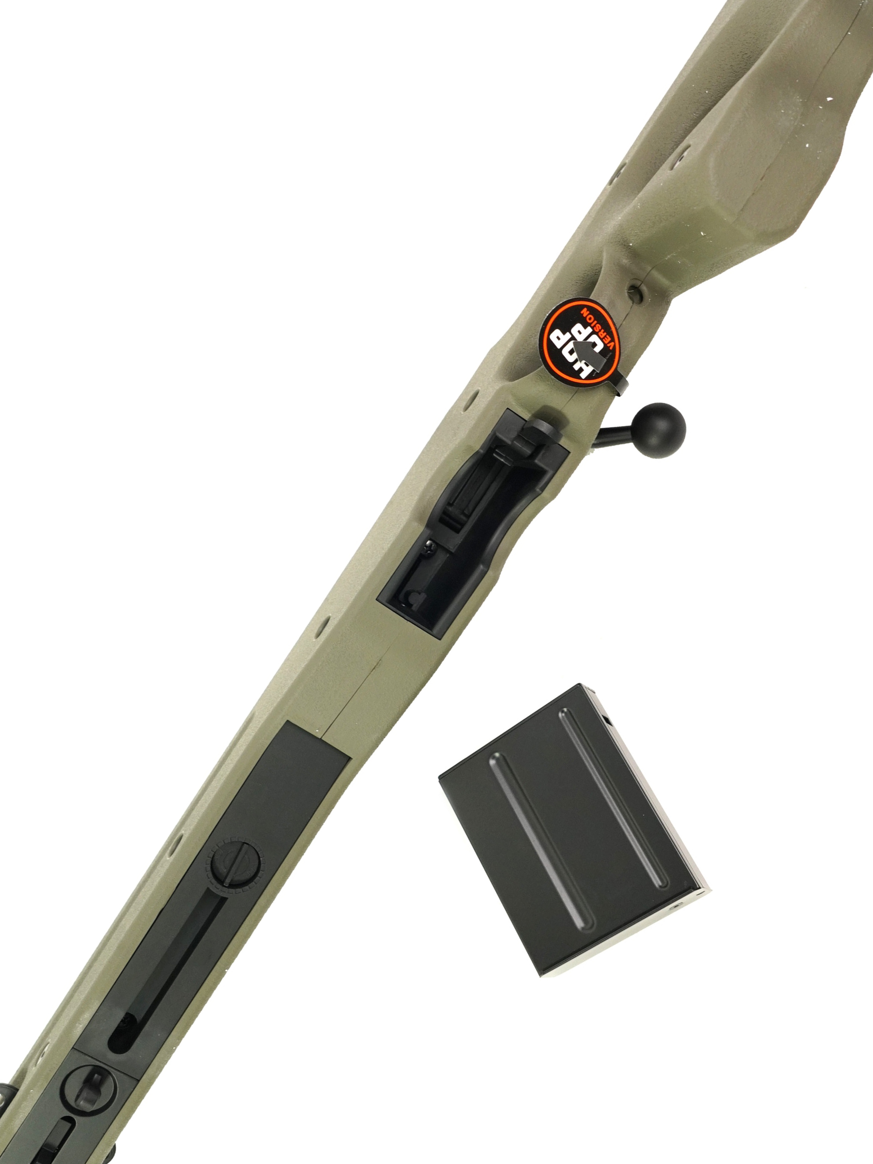 Камера хоп-ап регулируемая, ее настройка производится с помощью специального переключателя в верхней части ложа. Рядом с рычагом взвода находится предохранитель, переключение выполняется с характерным щелчком. Винтовку Cyma L96A1 spring может свободно приобрести каждый стрелок, достигший 18 лет.