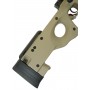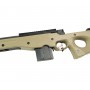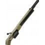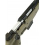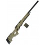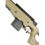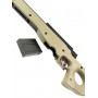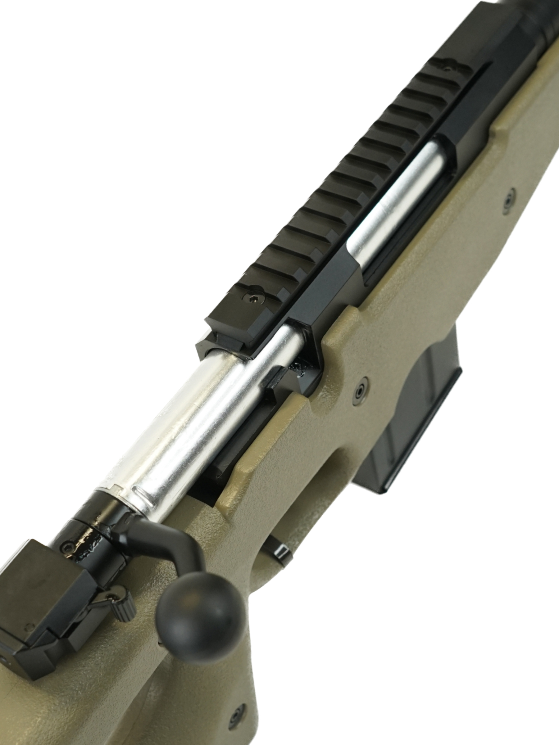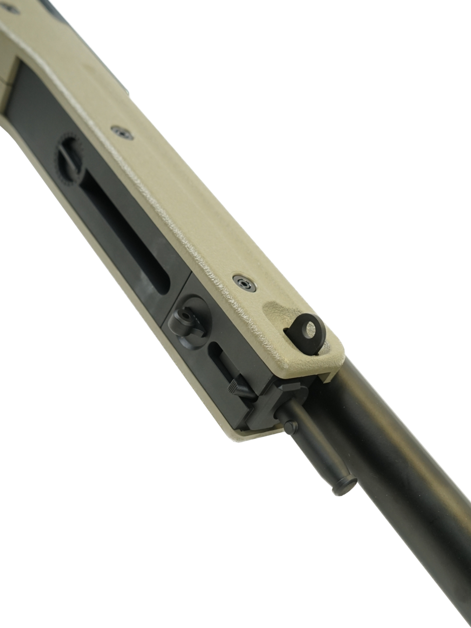 Модель выполнена в основном из алюминиевого сплава, приклад и ложе винтовки изготовлены из пластика ABS – прочного и стойкого материала. Особенностью винтовки является возможность регулировки приклада как по длине, так и в ширину, за счет специальных вставок и подщечника. Тыльник приклада прорезиненный, чтобы снизить силу отдачи выстрела. На ресивере расположена направляющая, позволяющая установить коллиматор или оптический прицел.