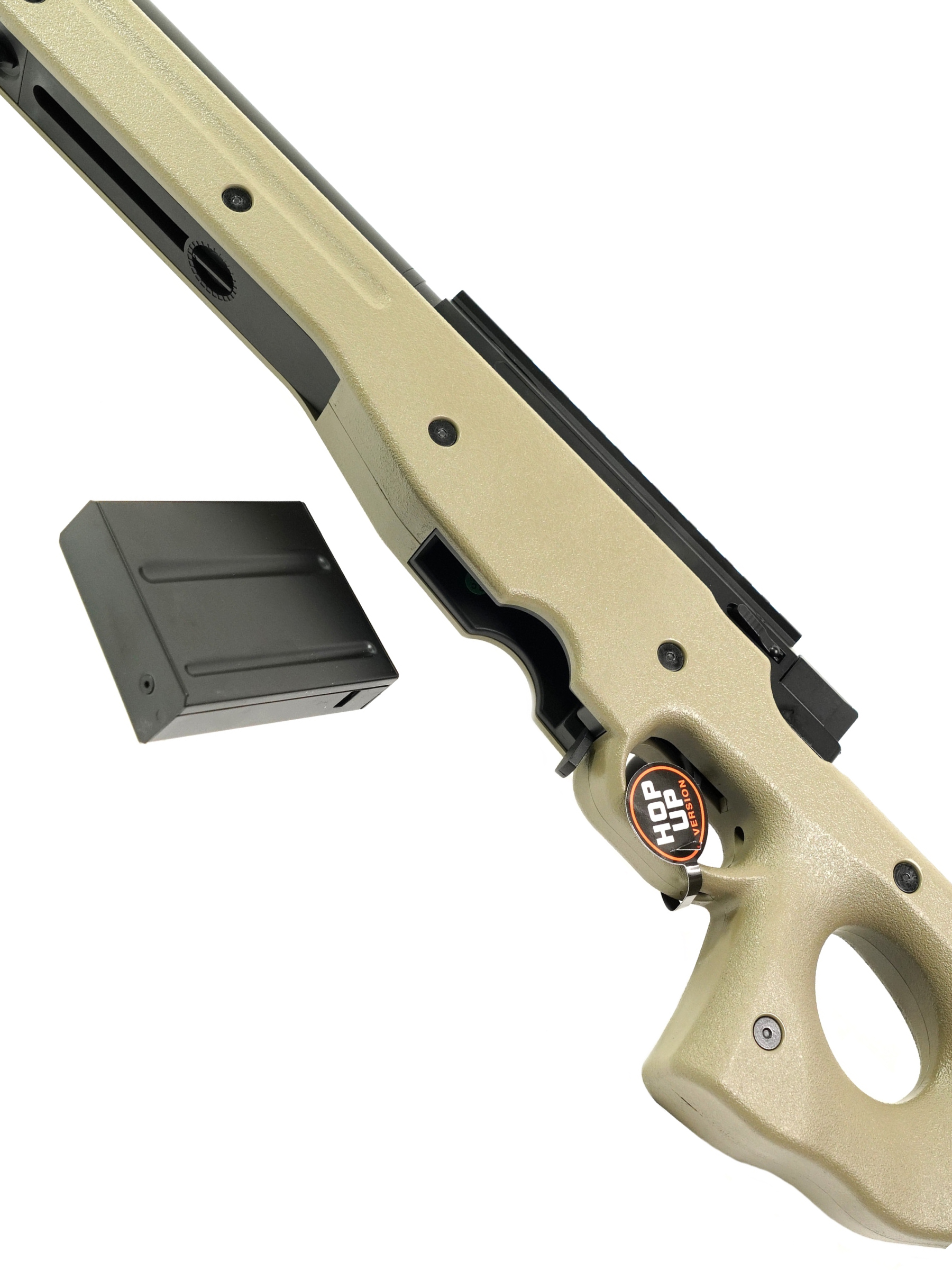 Камера хоп-ап регулируемая, ее настройка производится с помощью специального переключателя в верхней части ложа. Рядом с рычагом взвода находится предохранитель, переключение выполняется с характерным щелчком. Винтовку Cyma L96A1 spring может свободно приобрести каждый стрелок, достигший 18 лет.