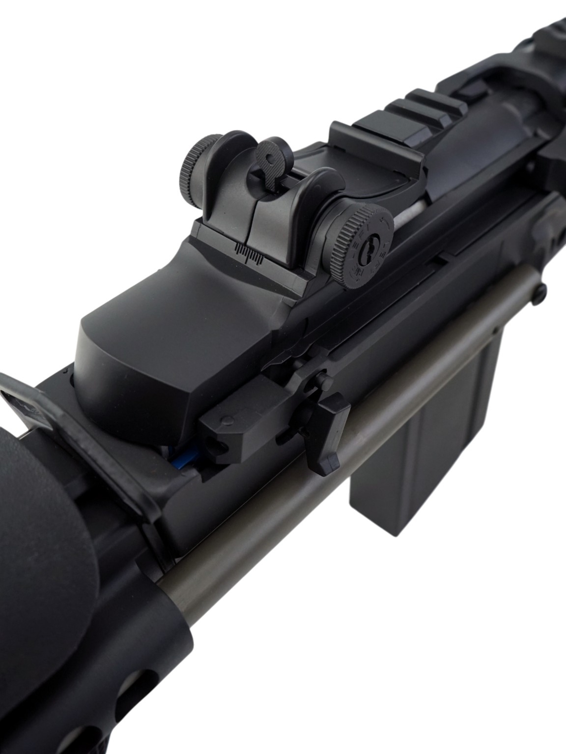 Стрельба из винтовки ведется стандартными для данного типа оружия шариками 6 мм. Бункерный магазин отличается повышенной емкостью, вмещая 400 единиц шариков. На вылете шарики получают скорость около 110 м/с. Камера хоп-ап, увеличивающая дальность стрельбы, имеет возможность регулировки. Дульная энергия винтовки не превышает 1,7 Дж, поэтому каждый желающий может стать владельцем такого оружия без предоставления дополнительных разрешительных документов. Стреляет винтовка в двух режимах – автомат и полуавтомат.