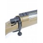 Основной материал изготовления винтовки Cyma M24 spring Tan – это сплав на основе алюминия, поэтому оружие получилось довольно легким и при этом достаточно прочным. Из пластика здесь выполнен приклад, регулируемый по длине. На тыльной части приклада установлен затыльник из резины, способный уменьшить отдачу. Приклад регулируется при помощи специальной шайбы на затыльнике. Штатные прицельные приспособления у данной модификации отсутствуют, так как производитель установил планку для крепления на винтовку оптики.