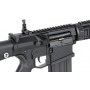 Одной из ключевых особенностей Cyma SR-25 QBS DMR является наличие RIS цевья, позволяющего устанавливать различные тактические аксессуары, такие как сошки, передние рукоятки и другое оборудование. Складной диоптрический целик не мешает использованию оптических прицелов. Контактная группа со встроенным MOSFET повышает надежность электроники и улучшает отклик спускового крючка. Винтовка имеет резьбу M14- для установки глушителей и трассерных насадок.