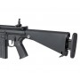 Автомат комплектуется бункерным магазином вместимостью 500 шариков, что обеспечивает достаточный запас боеприпасов для продолжительных перестрелок. Регулируемый Hop-up позволяет настроить траекторию полета шарика для максимальной дальности и кучности. Сердцем винтовки является гирбокс Ver. 2.5 с внесенными изменениями, разработанный специально для SR-25.