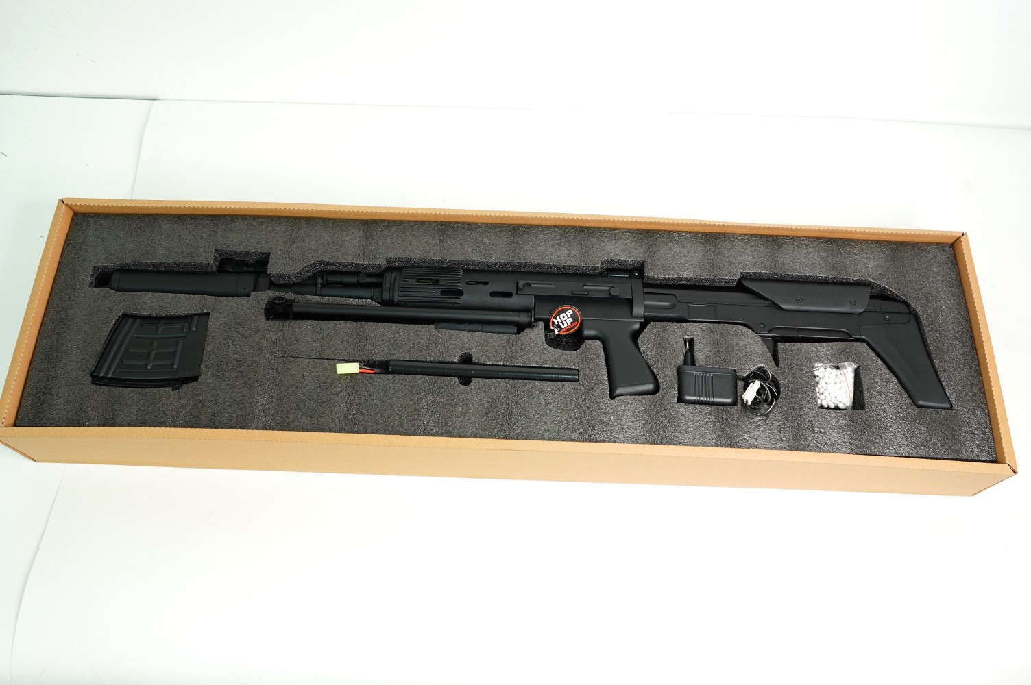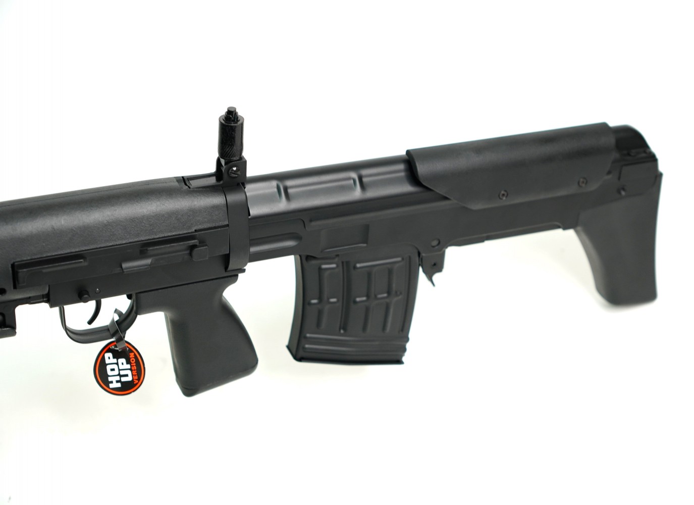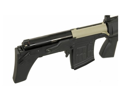 Благодаря регулируемой камере хоп-ап, получить доступ к которой можно путем смещения затвора, кучность и дальность настраивается по желанию стрелка. Источником энергии винтовки Cyma СВД AEG является аккумулятор NiMH 8,4 V на 1100 mAh, он питает гирбокс SVD type. Аккумулятор расположен в цевье, и входит в комплектацию винтовки вместе с зарядным устройством.