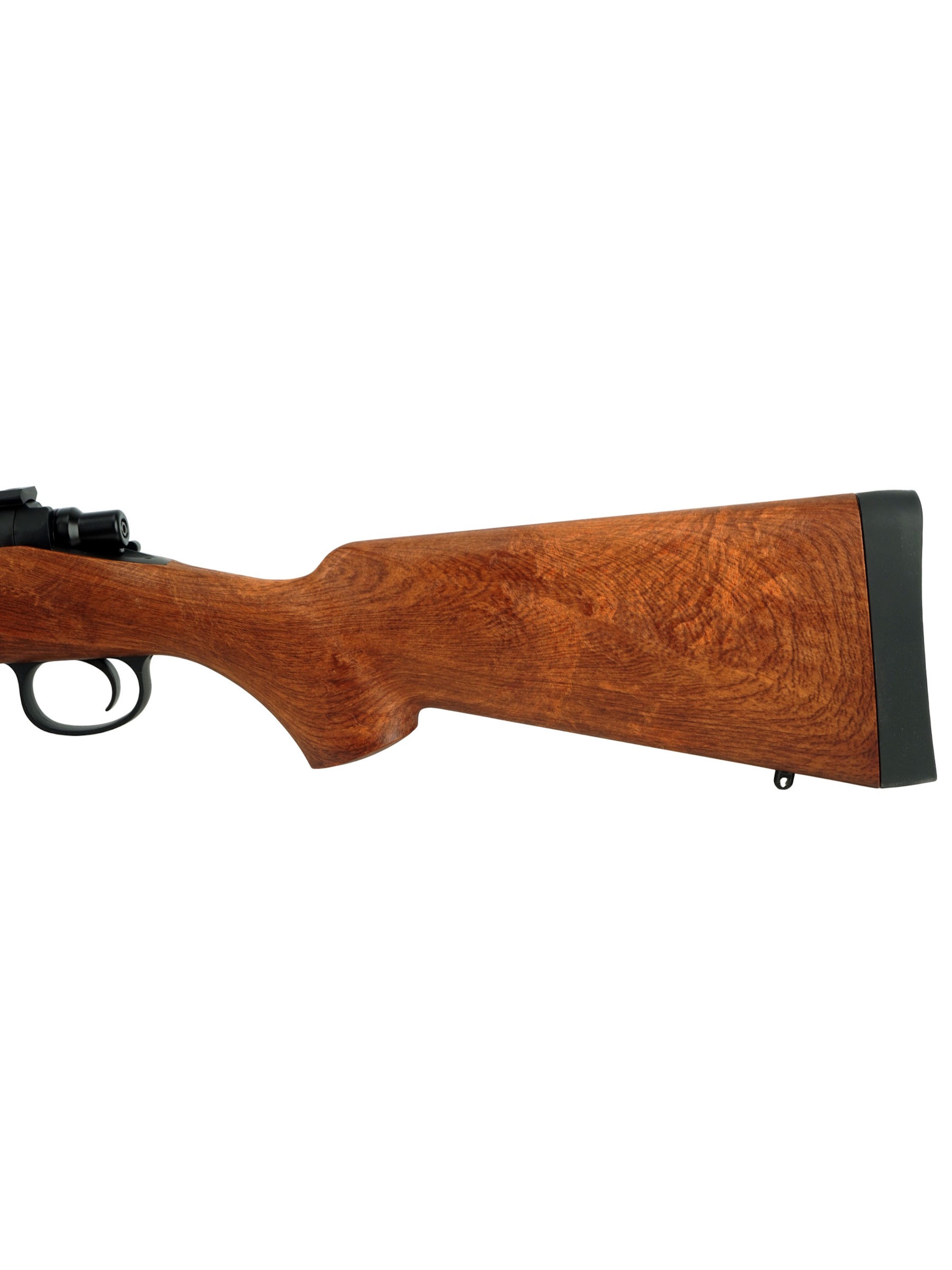Задняя часть приклада оснащена затыльником из резины, снижающим отдачу. В длину винтовка достигает 107 см, вес – 3,5 кг. Комплектация винтовки стандартная: магазин, ускоритель заряжания, шомпол, инструкция.