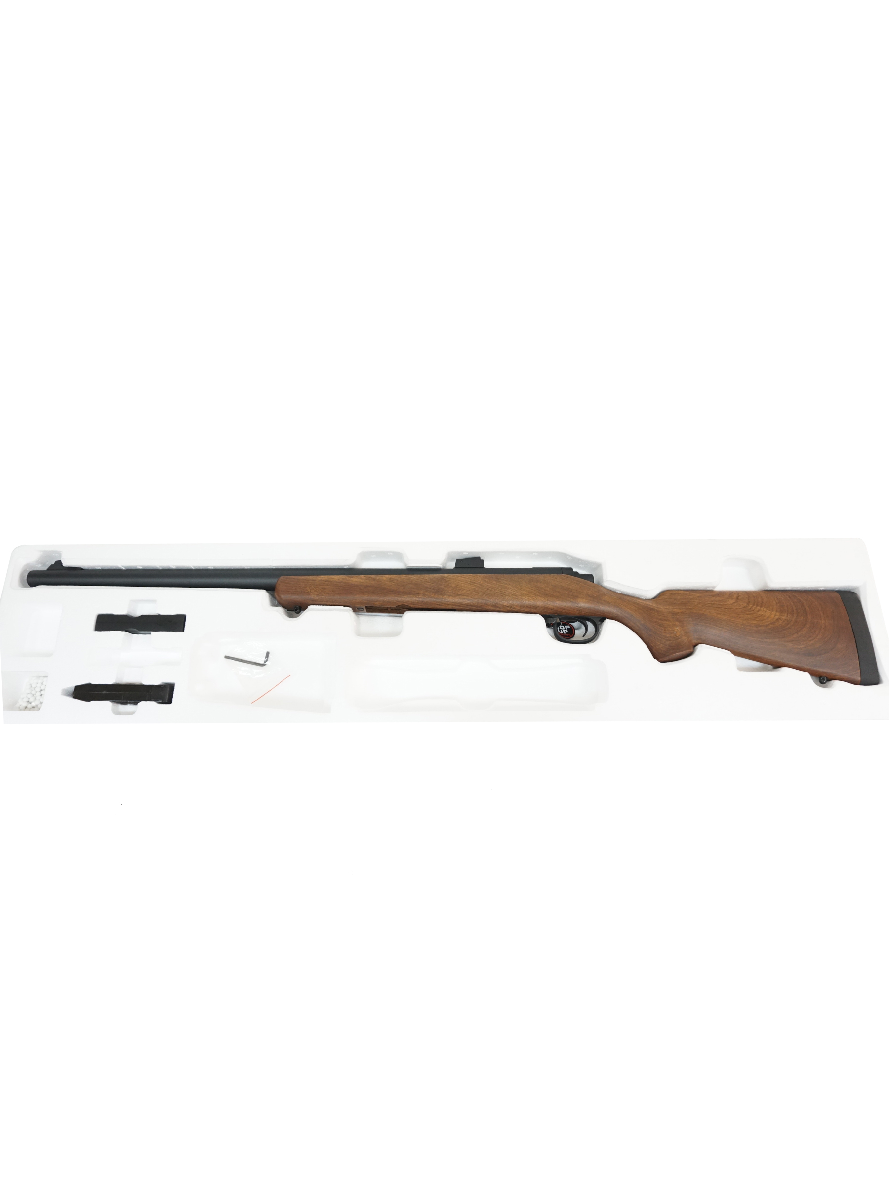 Винтовка выполнена в дизайне «под дерево», и по внешнему виду такой пластик неотличим от поверхности натурального дерева. На прикладе установлен затыльник из резины, способный эффективно снижать силу отдачи. Весит винтовка 3,5 кг при длине 107 см. Поставляется модель с магазином, ускорителем заряжания, шомполом, документы.