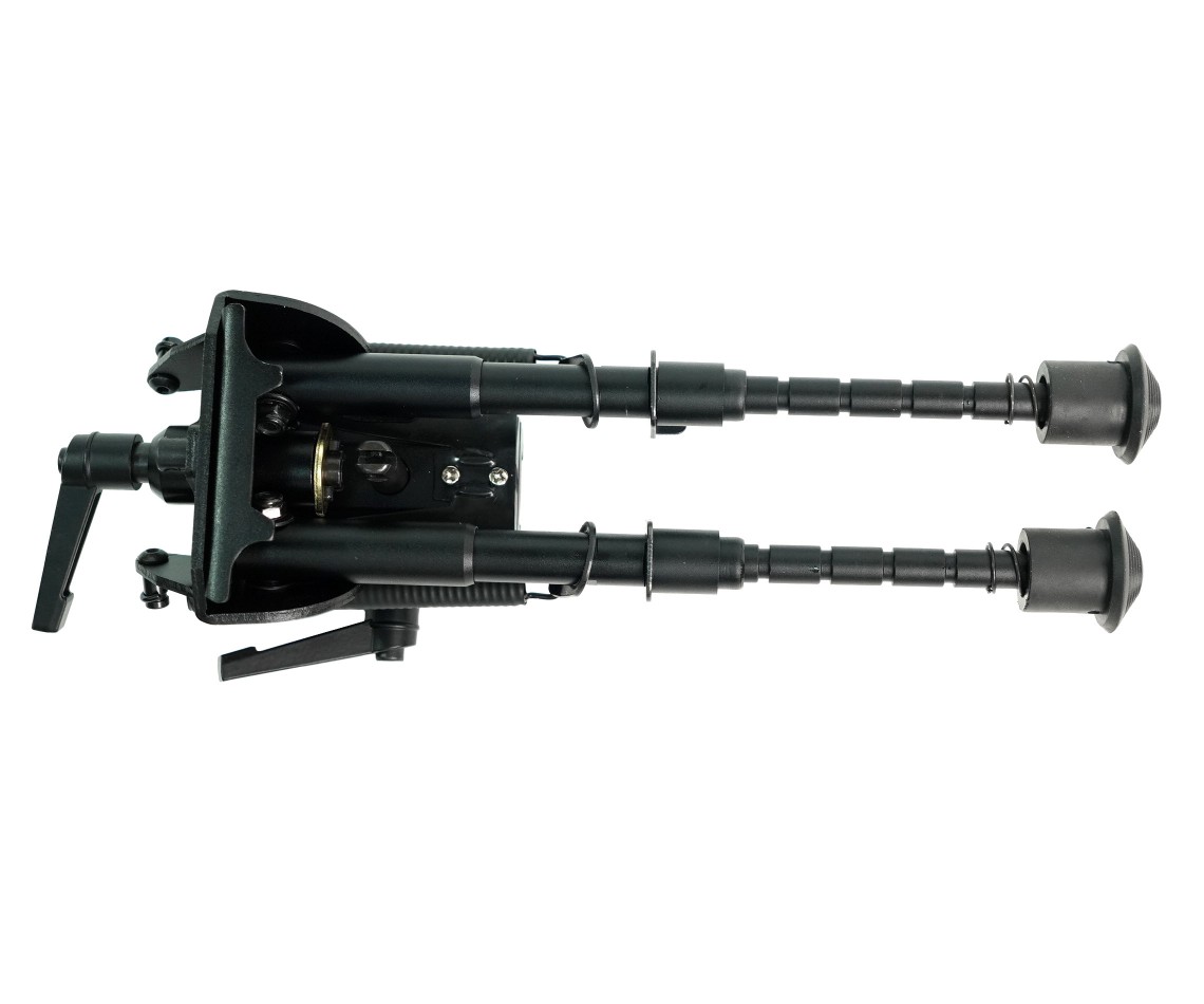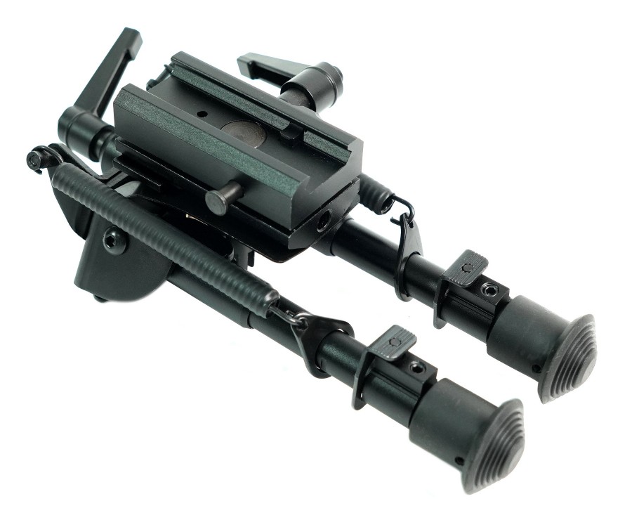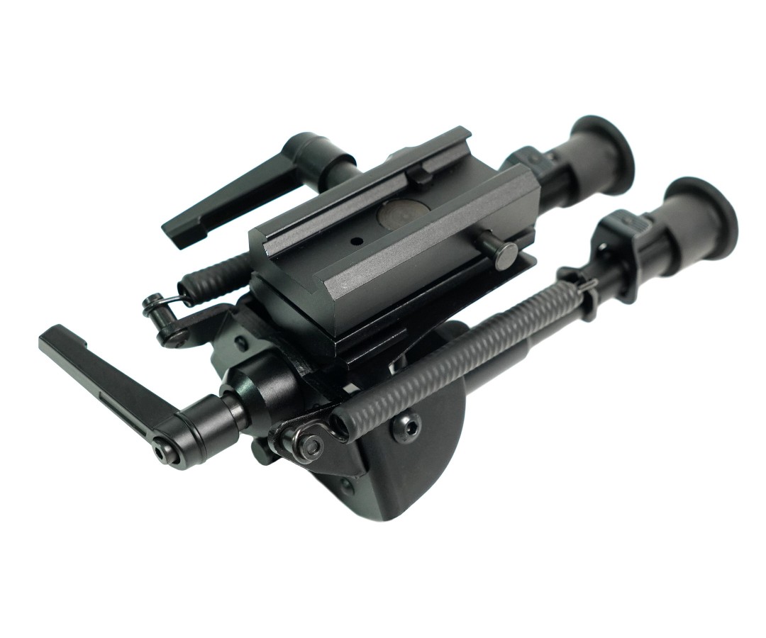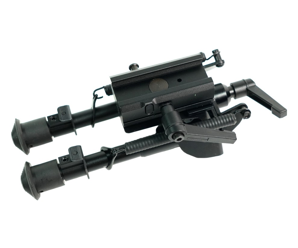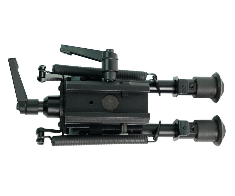 Качающееся основание с вращением на 360° позволяет выставить винтовку ровно и легко наводить на цель, а рычаг фиксации упрощает использование. Совместимость с планкой Weaver (22 мм) и анодированное покрытие обеспечивают надежность и долговечность. Витые пружины позволяют удобно регулировать угол наклона и компактно хранить сошки.