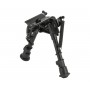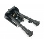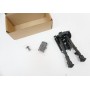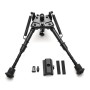 Модель складной раздвижной двуногой сошки для установки на системы рельсового интерфейса типа RAS/RIS с регулировкой высоты от 6 до 9 дюймов (155 мм 220 мм). Оснащена пружинным механизмом разведения ног. Ноги с проточками. Система выдвижения предусматривает 5 положений с шагом 15 мм. Регулировка осуществляется отжатием фиксаторов. Наличие механизма качания обеспечивает большой диапазон регулировки завала винтовки на неровной поверхности.