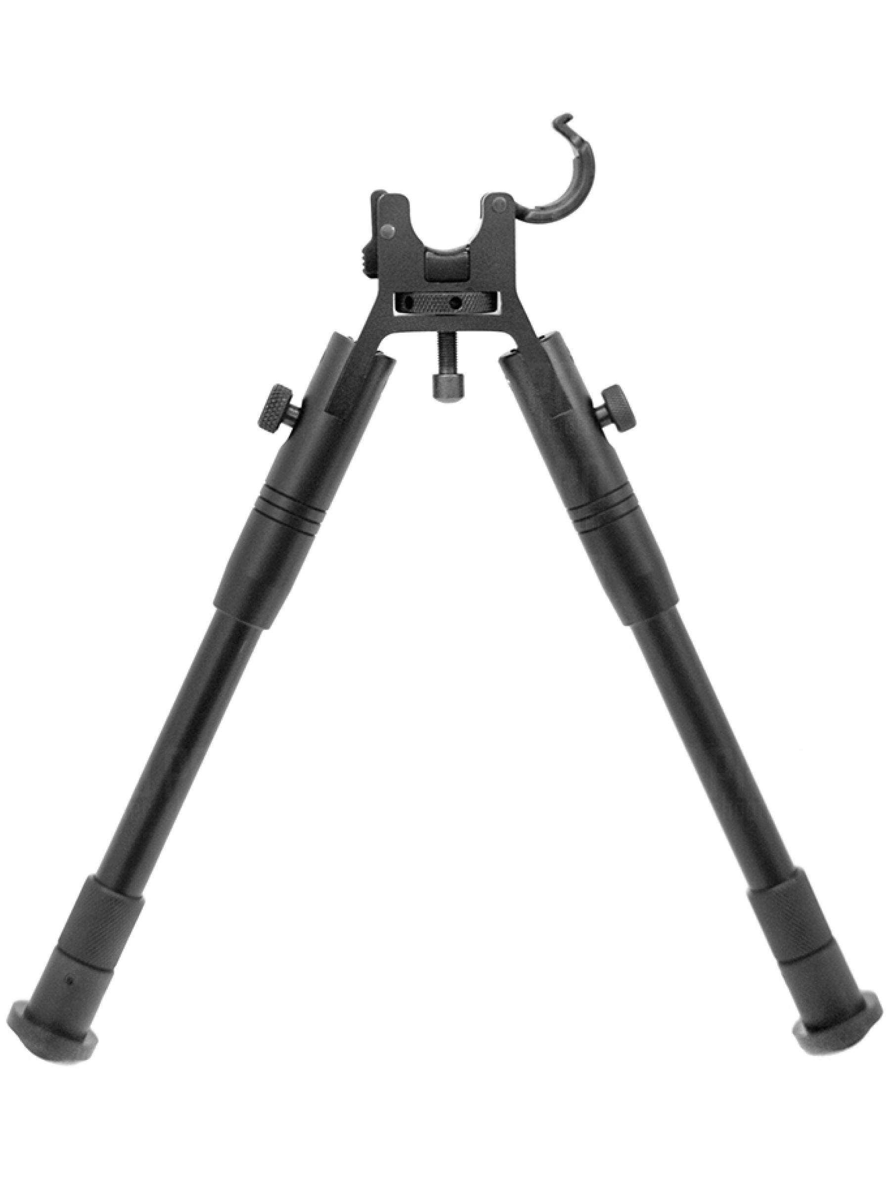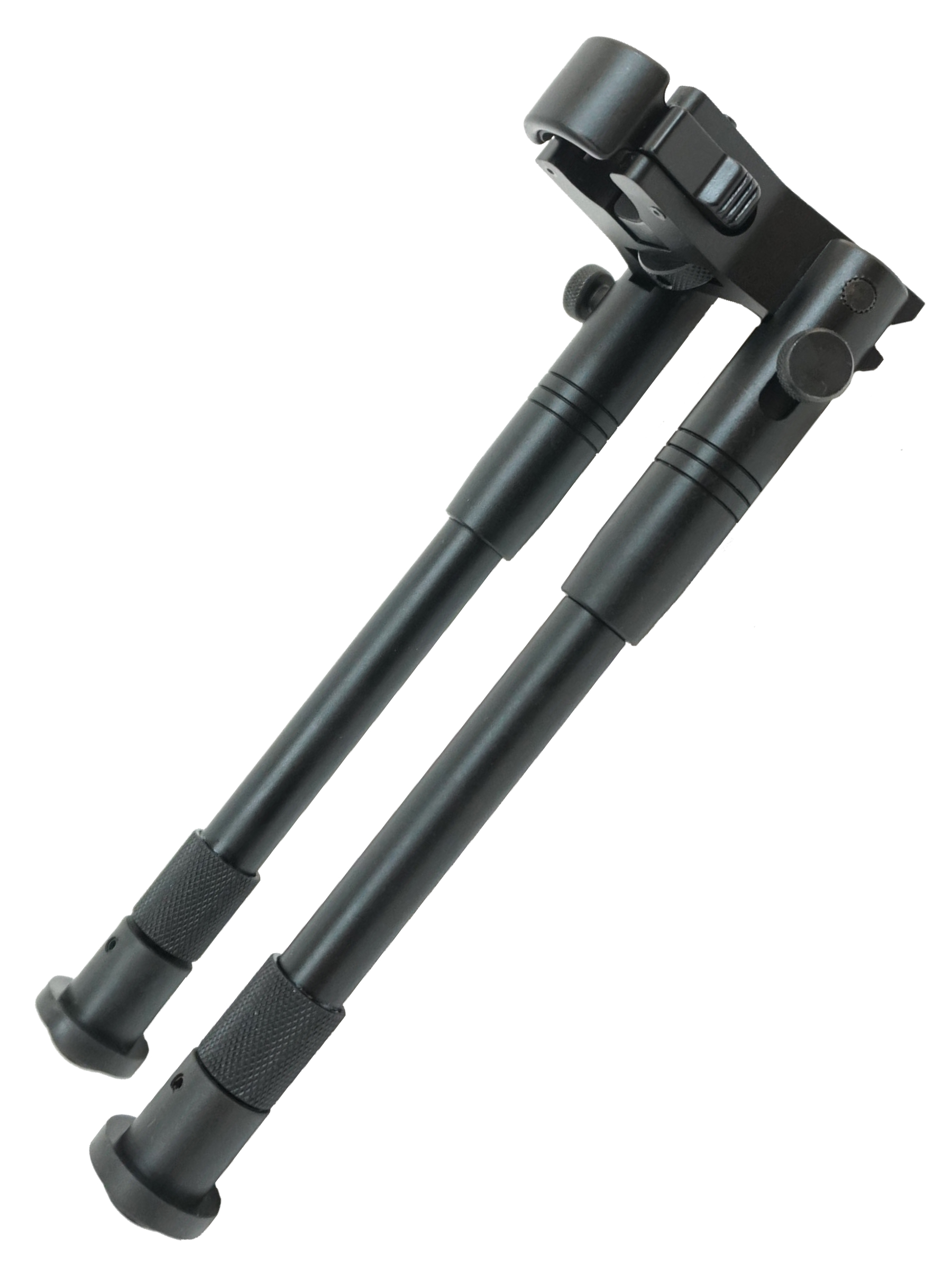 Это складные сошки для установки на ствол изготовлены из стального сплава, имеют стальные крепежные винты для складывания сошек в одном направлении. Предназначены для установки на оружие, наружный диаметр ствола должен быть от 11 мм до 19 мм. Сошки быстро крепятся на ствол и регулируются по высоте от 220мм. до 259мм. Идеально подходят для стрельбы из положения лежа. Основания ножек прорезиненные, что дает дополнительное преимущество стрелку на твердой поверхности при стрельбе. Для сошек была также разработана система Posi-lock, которая удерживает ногу сошки от складывания и надёжно фиксирует нужную длину.