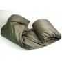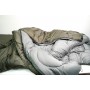 600 г/м2 термофайбера, который очень теплый, хорошо пропускает воздух, остается сухим - используется в качестве утеплителя. Такое количество утеплителя делает его относительно громоздким и тяжелым в районе 3-х киллограм. Наружный материал таффета 190 - водонепромокаем и теплосветоустойчив. Внутренние материалы эпонж и бязь.