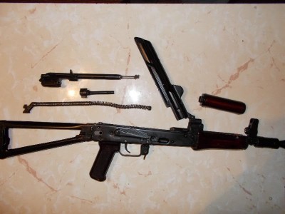 После таких конструкционных изменений использовать ни сам автомат в качестве боевого оружия не представляется возможным, ни его отдельных элементов для сборки пригодного для стрельбы оружия. Как и в боевом образце, приклад этого автомата складной, изготовлен из натурального дерева. По массо-габаритным характеристикам охолощенный автомат сходный с боевым весит 2,7 кг, его длина вместе со стволом – 49 см. Изделие поставляется в комплекте с магазином и паспортом.