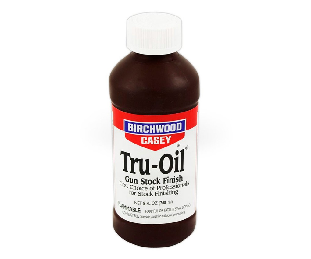 Средство Birchwood Tru-Oil из натуральных масел, включая льняное, для финишной обработки деревянных изделий и прикладов. Придаёт дереву влагоотталкивающие свойства, не мутнеет, не желтит, предотвращает рассыхание дерева и появление трещин.