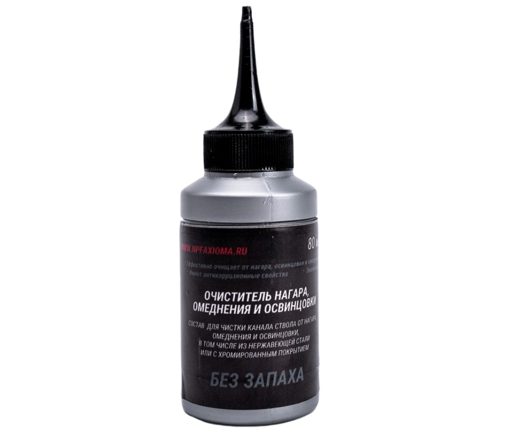 Очиститель нагара, омеднения и освинцовки без запаха. Состав рассчитан для чистки канала ствола от нагара, омеднения и освинцовки, в том числе из нержавеющей стали или с хромированным покрытием.