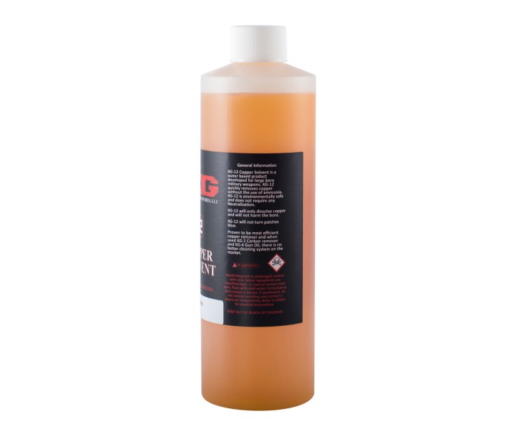 Практика показала что KG-12 не имеет равных в своем классе по удалении медных отложений внутри ствола. Сольвент специально разрабатывался по удалении медного налёта не повреждая металл.