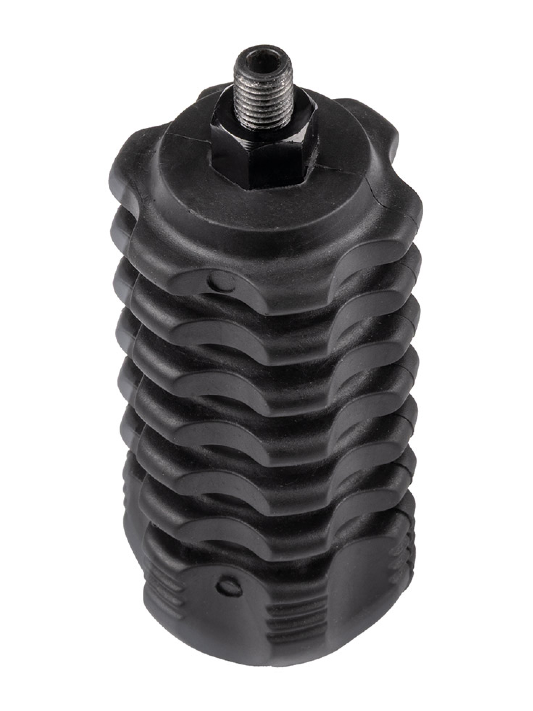Стабилизатор вкручивается в резьбовое отверстие в нижней части рукоятки лука. Ещё одна функция стабилизатора — фиксация на рукоятке вязочки или ремешка, которые предотвращают выпадение лука из руки во время выстрела.