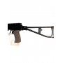 Модель отличается безупречной сборкой, люфтов нет. Корпус прочный, выполнен из легированной стали. Приклад винтовки – стальной, складной, магазин и цевье пластиковые. Приклад покрыт слоем фосфатного лака для дополнительной защиты от влаги. Корпус с левой стороны оснащен креплением «ласточкин хвост», аналогично боевому прототипу, и позволит установить оптику или коллиматор.