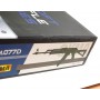 Энергию выстрела обеспечивает никель-металлогидридный аккумулятор на 1200 mAh, он находится в гнезде под крышкой ствольной коробки. Магазин привода бункерного типа, на 500 шаров 6 мм. Скорость выстрела – 120 м/с, скорострельность – ок. 700 выстрелов в минуту.