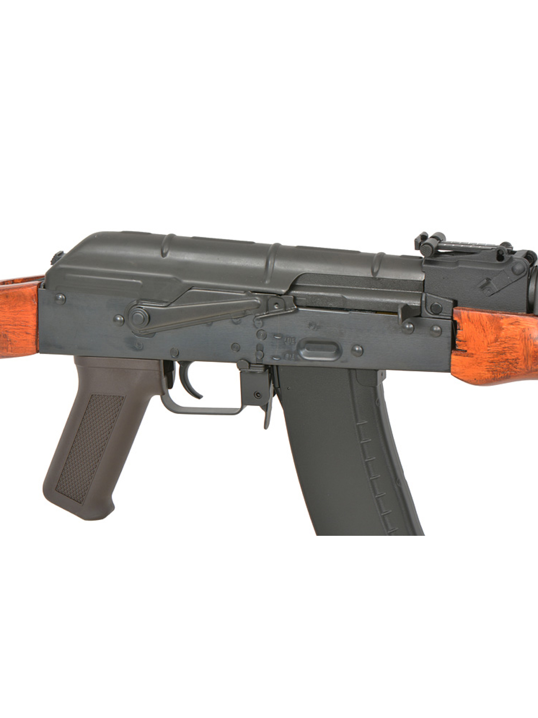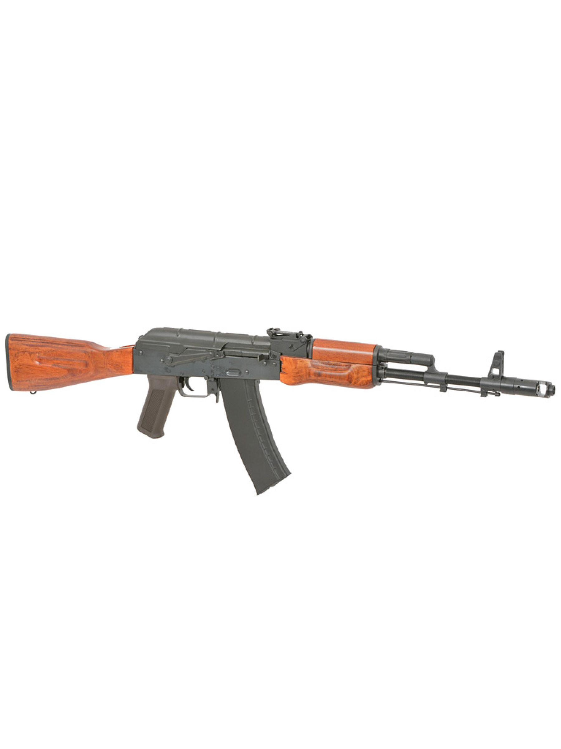 Страйкбольный автомат Cyma AK-74 Platinum с деревянным прикладом и цевьём — это идеальное сочетание классического дизайна и современных технологий, созданное для ценителей реалистичной имитации боевого оружия. Вдохновлённый легендарным автоматом Калашникова АК-47 и АКС-47, этот страйкбольный автомат сочетает аутентичный внешний вид с высокой надежностью и отличными техническими характеристиками. Его корпус выполнен из прочной стали и натурального дерева, что не только подчеркивает классический стиль, но и обеспечивает долговечность и комфорт в эксплуатации. Общая длина конструкции составляет 960 мм при весе около 3500 г, что придает ощущение настоящего боевого оружия.