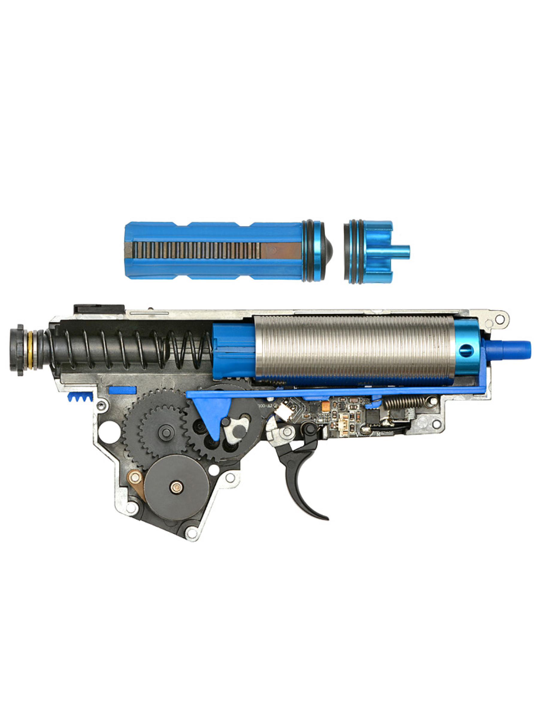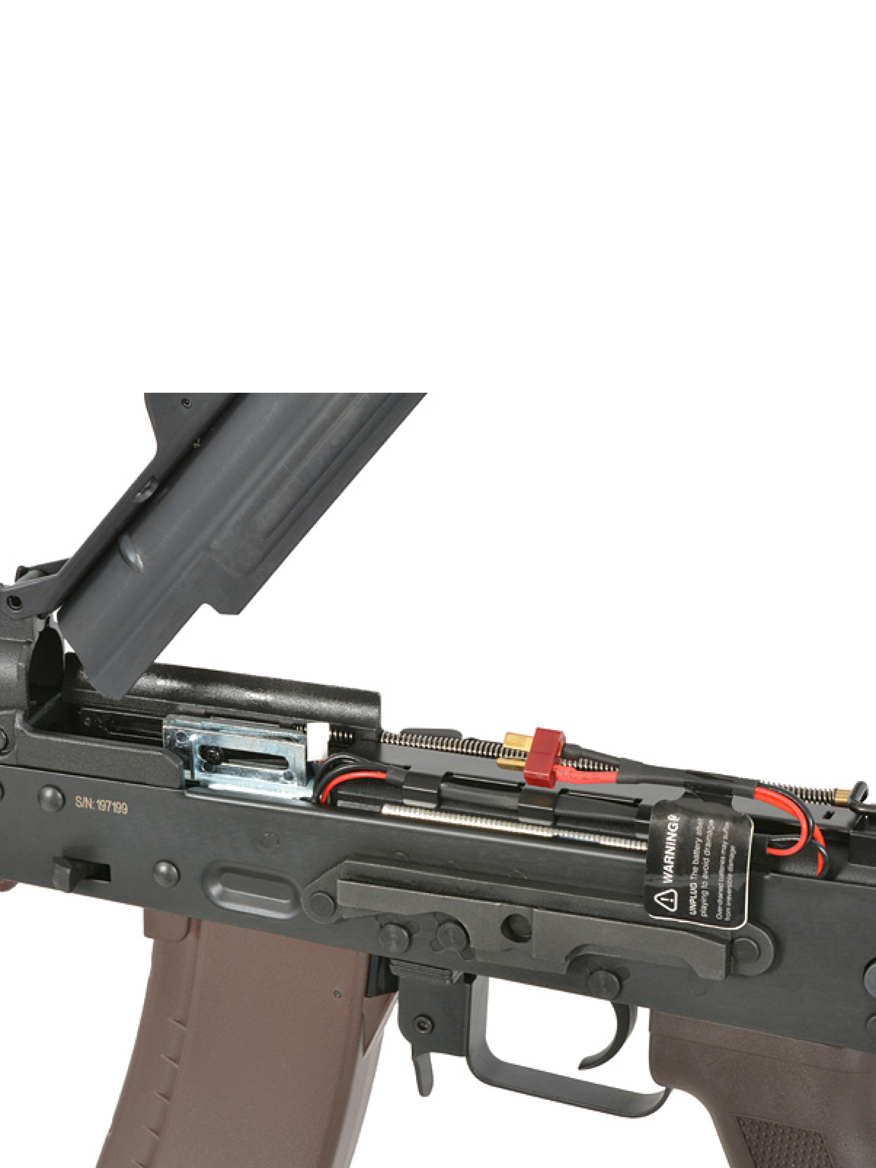Автомат оснащён механическим магазином емкостью 140 шариков калибра 6 мм, что обеспечивает длительный игровой процесс без частой перезарядки. Внутри установлен современный MOSFET — это позволяет управлять режимами стрельбы более точно и защищает электронику от перегрузок. Важное преимущество — складной приклад, который облегчает транспортировку и хранение устройства, делая его особенно удобным для городских и тактических игр. Автомат питается от Li-Po аккумулятора 7,4 В с разъёмом mini-Tamiya, обеспечивая стабильную работу и хорошую отдачу.