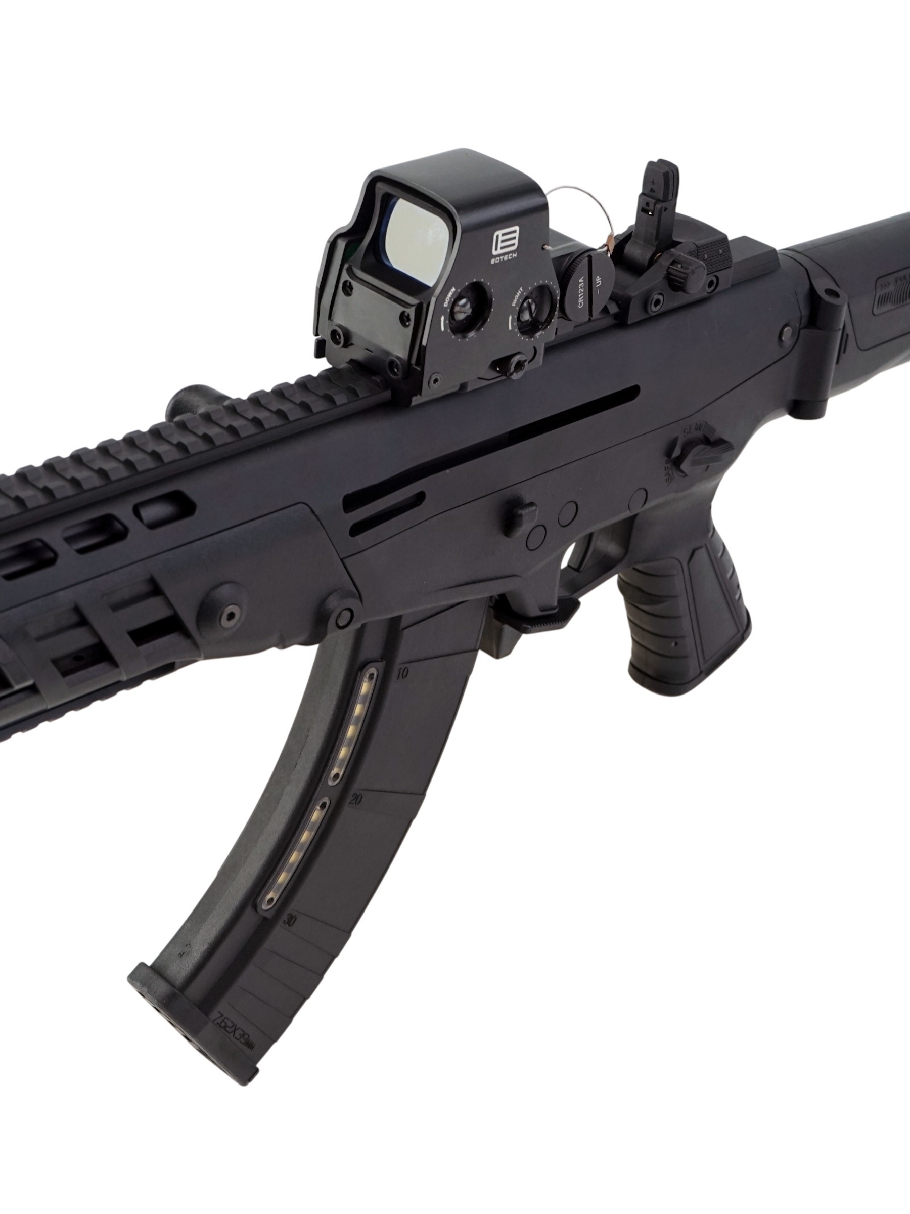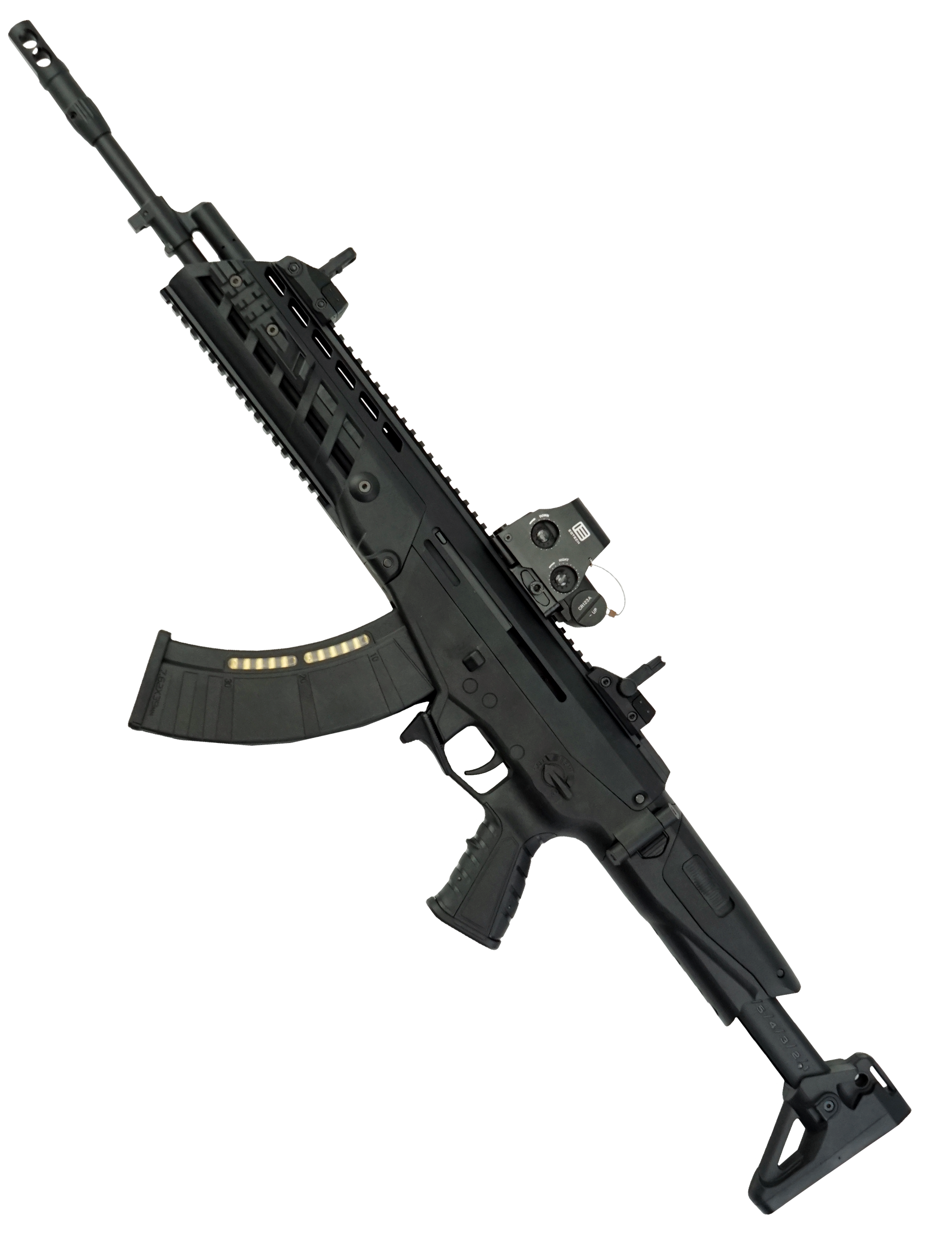 | Особенности: | складной / телескопический приклад, RIS-цевье, регулируемый целик, антабка для ремня |