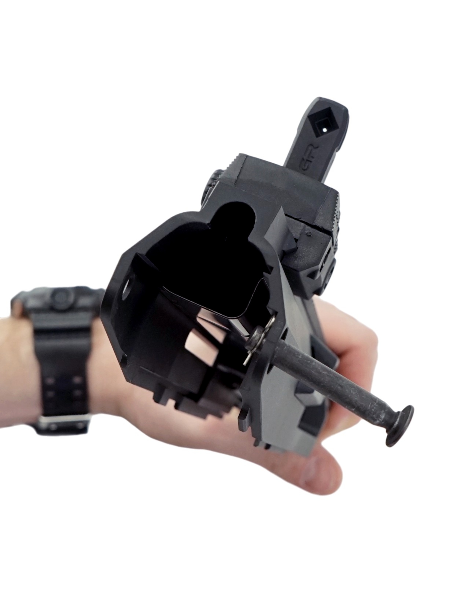 В основе лежит мощный гирбокс типа Ver. 3 с некоторыми модернизациями, обеспечивающий стабильную работу и дульную энергию до 3 Дж. Встроенный регулируемый Hop-up обеспечивает точность и дальность поражения целей, а наличие планки Weaver/Picatinny и RIS-цевья расширяет возможности по установке дополнительных аксессуаров: прицелов, лазеров или тактических фонарей.
