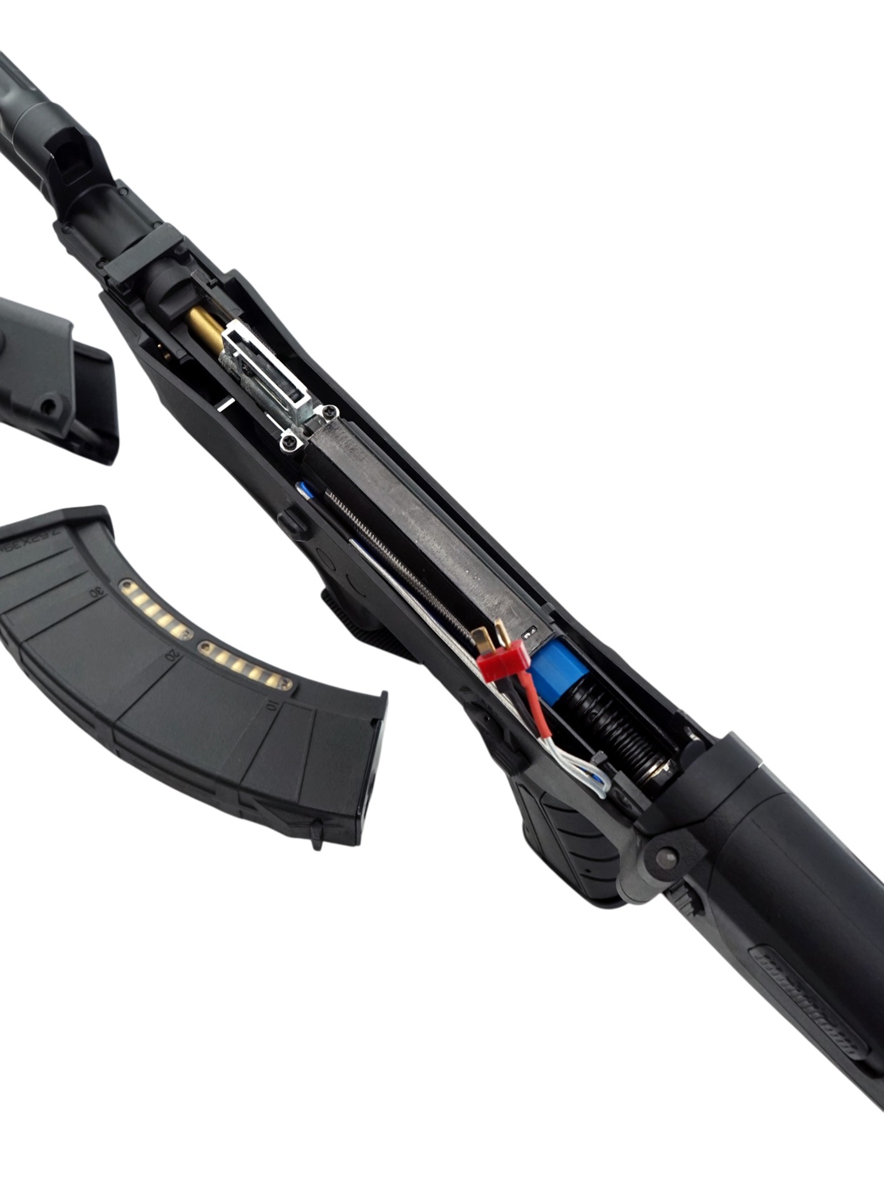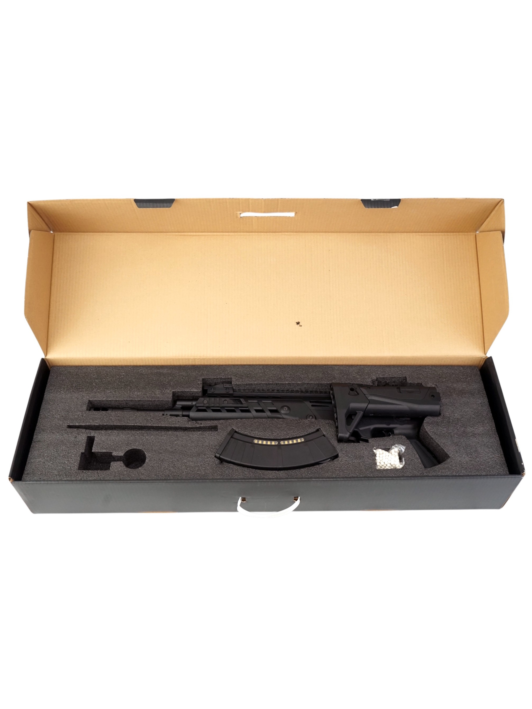Модель комплектуется магазином на 200 шариков, что позволяет проводить продолжительные игровые сессии без необходимости частой дозарядки.