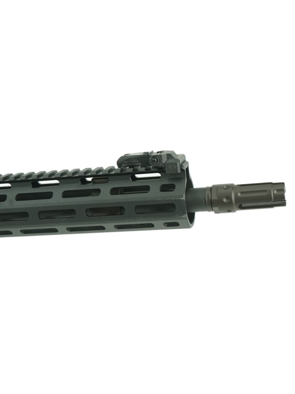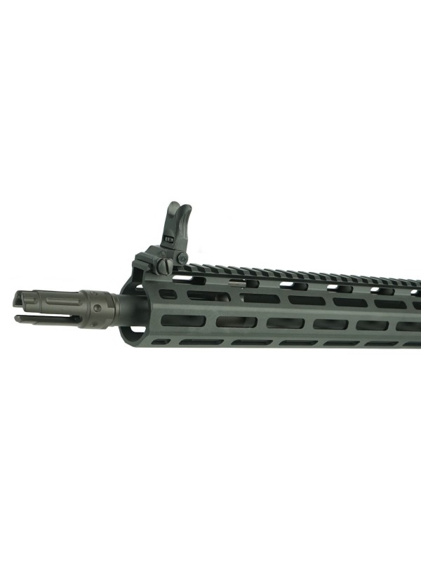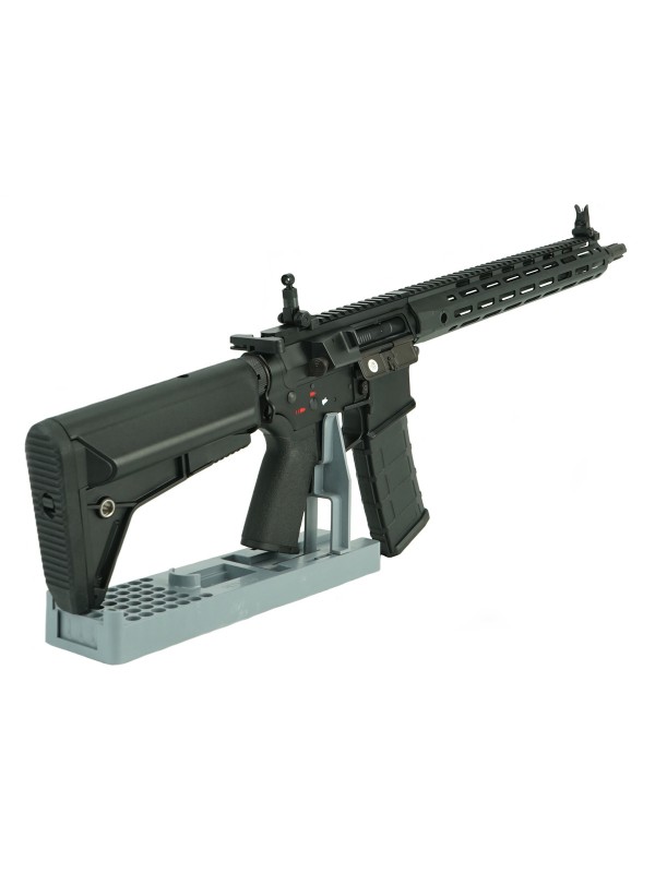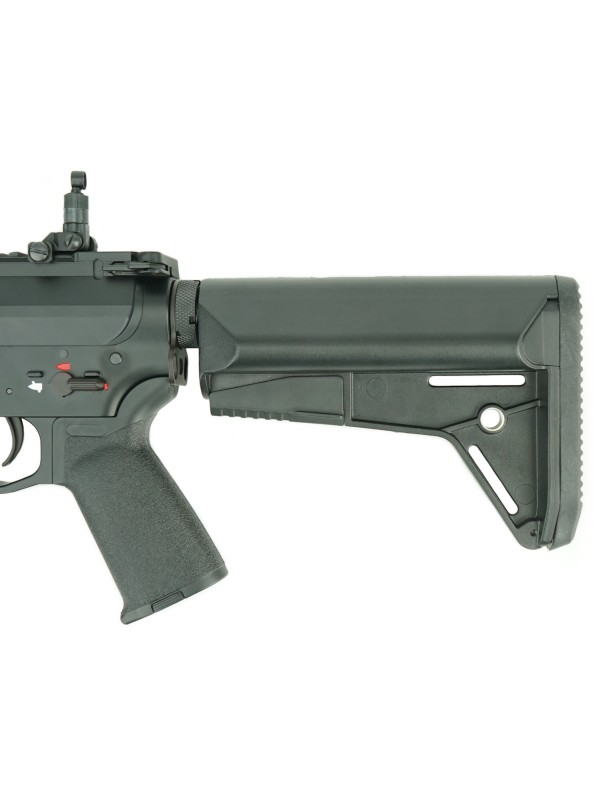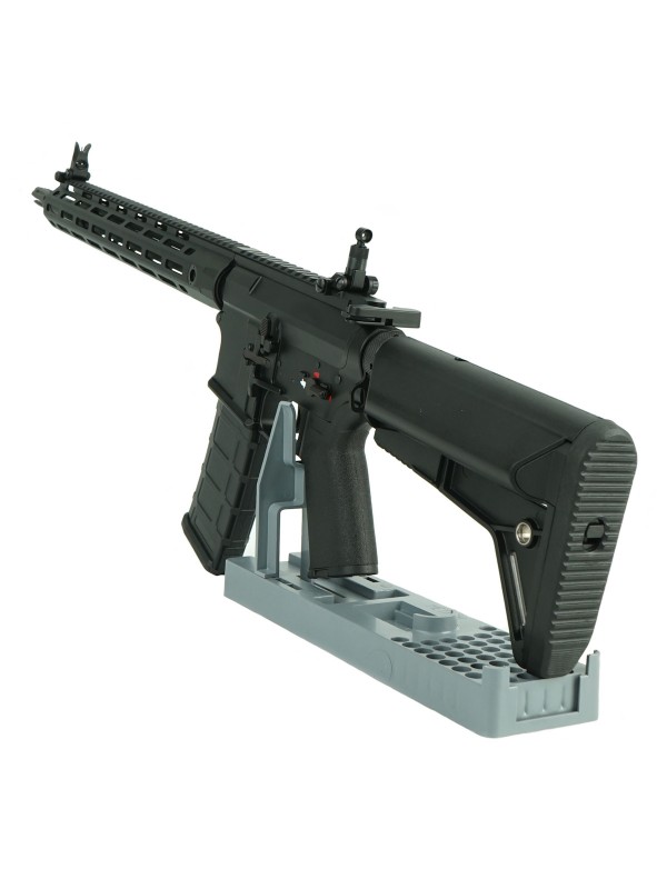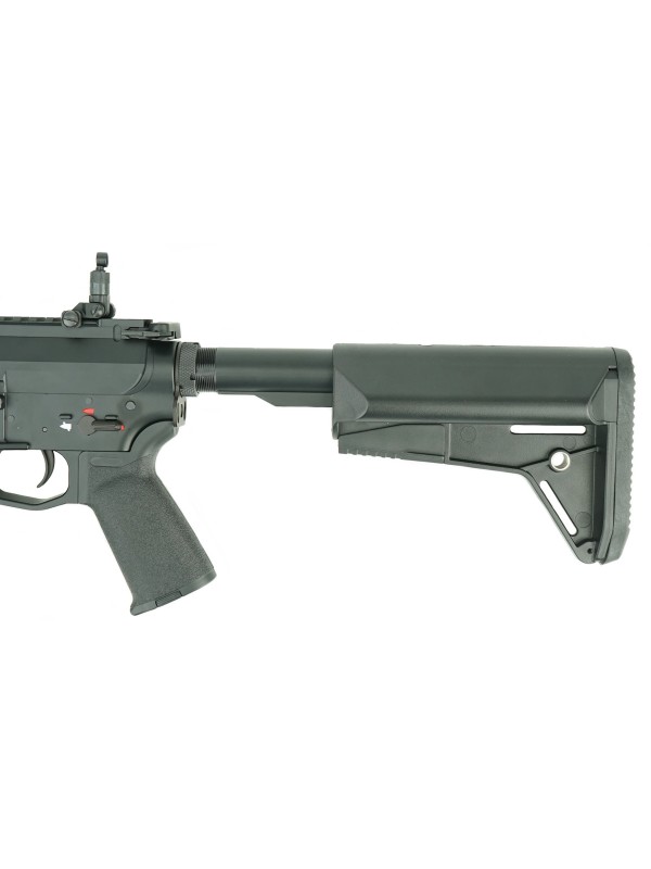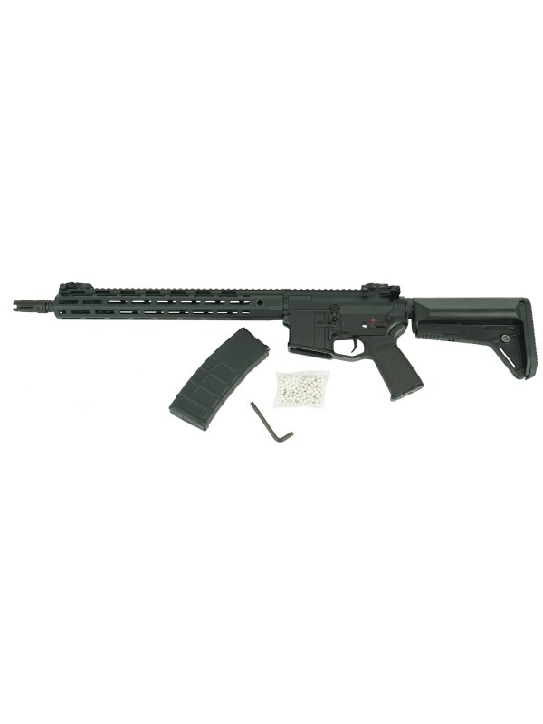Встроенный MOSFET повышает эффективность и надежность электроники, улучшает отклик спускового крючка и защищает контактную группу от износа. Система QBS (Quick Spring Change) позволяет быстро и легко заменить пружину для изменения мощности автомата в соответствии с требованиями площадки. Автомат имеет резьбу М14- для установки глушителей и трассерных насадок.