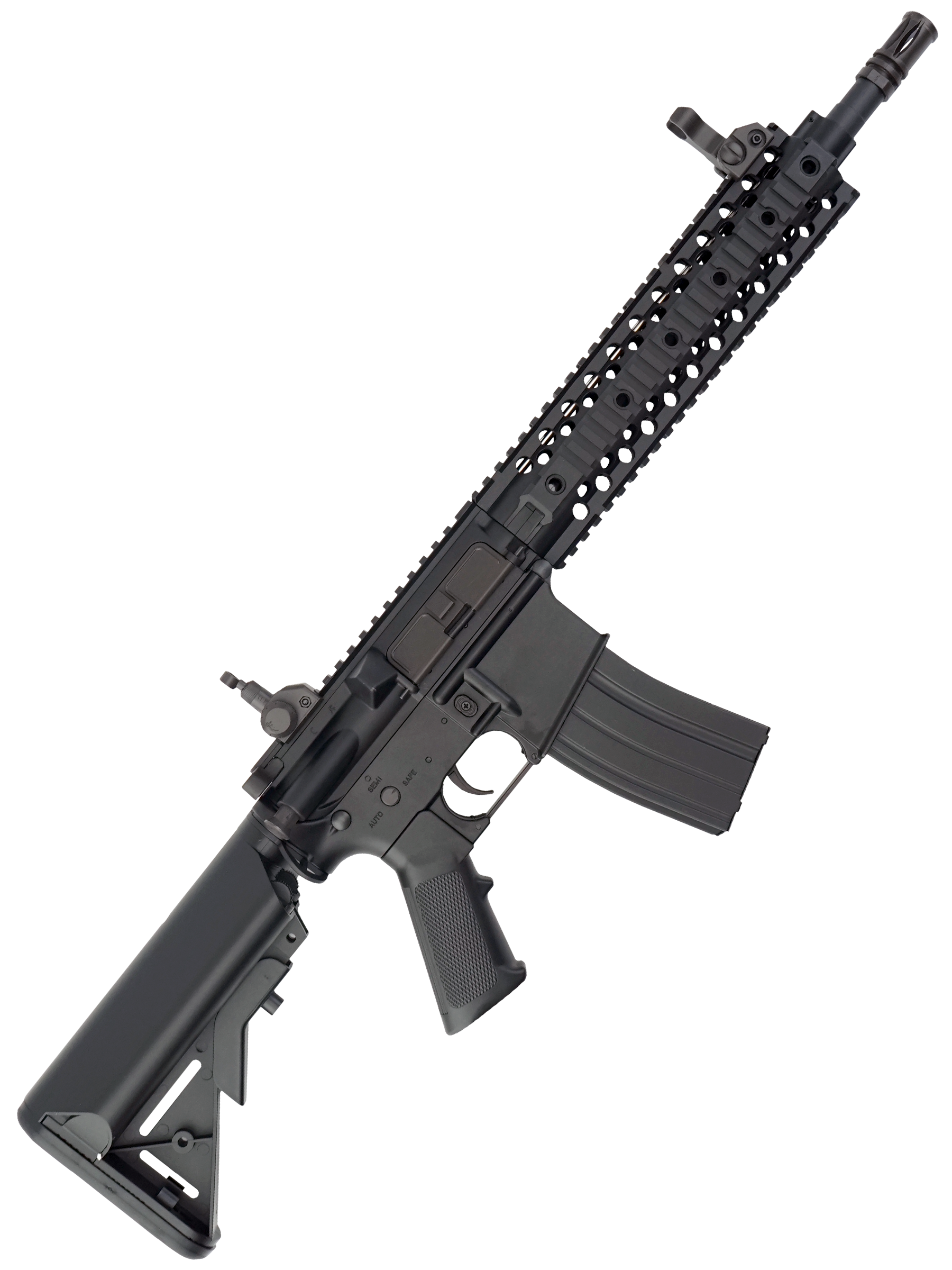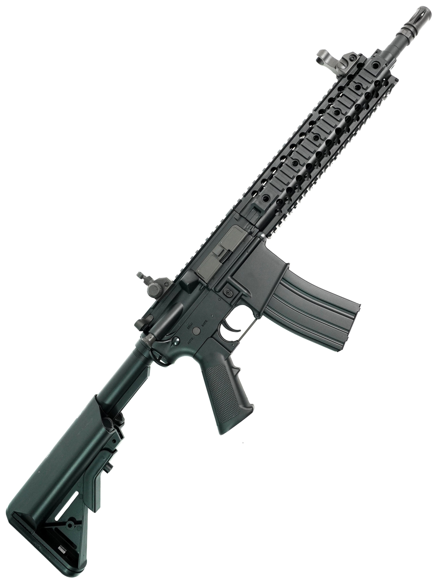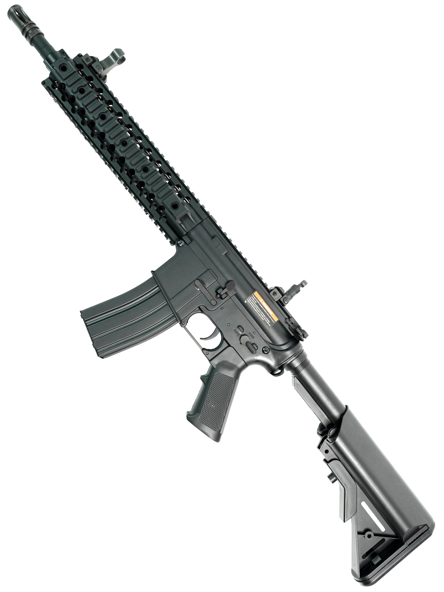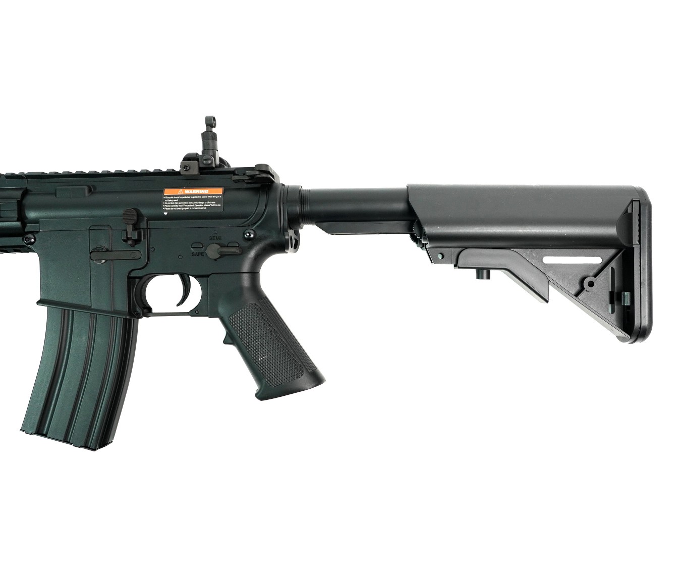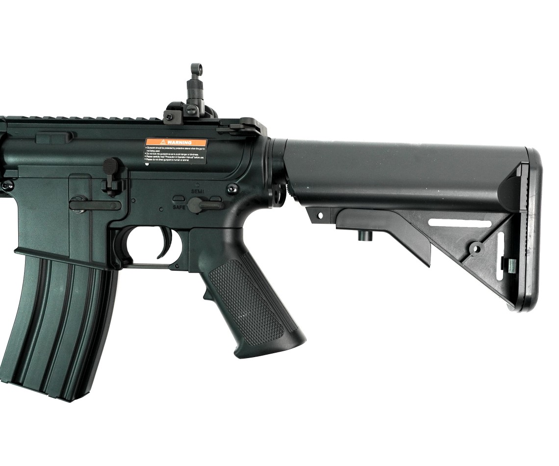Страйкбольный карабин M4 CQB RIS от китайской компании Cyma представляет собой точную копию оригинального карабина M4. Корпус привода изготовлен из прочного ABS-пластика. Внутри карабина находится гирбокс второй версии, выполненный из алюминиевого сплава. Все компоненты гирбокса стандартные и могут быть заменены на запчасти от других производителей, что обеспечивает высокую ремонтопригодность и возможности для тюнинга. Данная модель имеет планку Weaver / Picatinny для установки прицела.